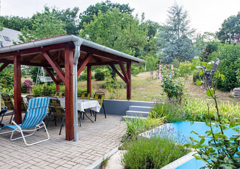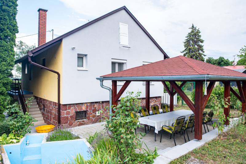 BALATONSZEPEZD REJTETT KINCSE – KÉTSZINTES NYARALÓ HANGULATOS KERTTEL Balatonszepezd egyik csendes, rendezett utcájában, szép nyaralóépületek környezetében kínálunk megvételre egy jó állapotú, folyamatosan karbantartott, 1972-ben épült nyaralót, amely a Balaton-felvidék természetközeli környezetét és a Balaton közelségének élményét egyaránt megadja. A 785 m²-es belterületi telken elhelyezkedő, 126 m2-es, 4 + 2 szobás, dupla komfortos ingatlan két külön bejáratú szinttel rendelkezik, így ideális választás lehet akár családi nyaralónak, többgenerációs használatra, vagy vendégház kialakítására is.Az ingatlan elrendezése: Alsó szint: előtér, konyha, fürdőszoba, két lakószoba, 17 m2-es garázs Felső szint: tágas nappali konyhasarokkal és egy 16 m2-es erkélykapcsolattal, három lakószoba, fürdőszoba, külön WC Az épület a földszinten terméskőből, az emeleten B30-as téglából épült. Pala tetőfedésű. A ház a nyugati és északi oldalon 15 cm-es homlokzati szigeteléssel és a padláson födémszigeteléssel is rendelkezik, ami tovább növeli komfortját. A ház minden helyisége ablakos, ezáltal az optimális elrendezésű helyiségek világosak, derűsek. A földszinten az előtérben elhelyezett lemezkandalló gondoskodik a melegről. A felső szinten hűtő-fűtő klímaberendezés került telepítésre. Az épület infrapanelekkel egyszerűen fűthetővé, télen is használhatóvá tehető és akár állandó lakhatásra is alkalmas lehet. Az emeleten elektromos mozgatású, fémredőnyök lettek telepítve. Az ablakok részben műanyag gyártásúak. Az emeleti szintről az őszi és téli hónapokban részleges balatoni panoráma tárul elénk.A kert kellemes hátteret ad a pihenéshez és a nyári együttlétekhez. A pergola árnyékában családi ebédek, baráti beszélgetések és nyugodt esték válhatnak a mindennapok részévé. A parkosított kertben termő gyümölcsfák – sárgabarack, körte, dió, őszibarack, cseresznye és füge – valamint dísznövények teremtenek természetes, barátságos környezetet. A kikapcsolódást egy kis merülőmedence és egy napelemes kerti zuhanyzó is szolgálja.Az udvarra egy kézi működtetésű úszókapun keresztül lehet bejutni. A kiépített és távfelügyeletre bekötött riasztórendszer pedig a biztonságról gondoskodik.Közművek: víz, villany (a bojler számára éjszakai áram is) bevezetésre került, csatorna nincs a környéken. A szennyvíz elvezetése egy kétaknás, zárt szennyvízgyűjtőbe történik. Gáz a telken belül, de nincs bevezetve a házba. Elhelyezkedése: szepezdfürdői vasútállomás, buszmegálló 800 m, strand 1,5 km, élelmiszerbolt 1,3 km, a komolyabb infrastruktúrát Révfülöp és Zánka biztosítja. Ez az ingatlan ideális választás lehet családok számára balatoni nyaralónak, befektetőknek vendégház vagy kiadható apartman kialakítására, vagy azoknak, akik a Balaton-felvidék nyugodt, természetközeli környezetében keresnek második otthont. A közvetlen szomszédságában fekvő 752 m2-es telek is eladó. Tulajdoni lapon az ingatlan: belterület, „kivett hétvégi ház, udvar” megnevezésű, tehermentes. Gyors birtokbaadás lehetséges. Balatonszepezd a Balaton és a Balaton-felvidék találkozásánál fekvő, barátságos hangulatú település, ahol még megvan a „régi balatoni” életérzés. Csendes utcák, hangulatos ófalu, rendezett strand és könnyű megközelíthetőség jellemzi. Ideális választás mindazoknak, akik nyugodt környezetben szeretnének pihenni, nyaralót kialakítani vagy értékálló befektetést keresnek a Balaton közelébenÉpítész- és ingatlanközvetítő irodánk minden hiteles szakmai segítséget meg tud adni, mellyel segíteni tudjuk döntését. Kérje az ingatlan részletes tájékoztató anyagát! Látogasson el http://balatoniingatlanguru.hazbank.hu/ weboldalunkra. Kövesse Balatoniingatlanguru facebook és balatoni_ingatlanguru instagram oldalunkat és iratkozzon fel YouTube csatornánkra http://www.youtube.com/@balatoniingatlanguru8238 ! Balatoni ingatlanguru – több mint közvetítő