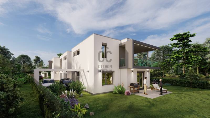 JÖVŐ OTTHONA= ZÖLD ENERGIAHŐSZIVATTYÚVAL, Szigetüzemű NAPELEM rendszerrel. A legmagasabb AA++ energetikai besorolás. Alacsony energia igény közel NULLA rezsi. Budafok legnívósabb részén eladó új építésű, exkluzív kivitelezésű, kétszintes ikerházak mindkét fele garázzsal, kizárólagos használatú kerttel.„A” Épület 4szobásHasznos alapterület: 181 m2Földszinti terasz: 20 m2Emeleti fedett terasz: 10 m2„B” Épület 5szobásHasznos alapterület: 219 m2Földszinti terasz: 28 m2Emeleti fedett terasz: 27 m2ÁRNYÉKOLÁS : Alumíniumból készült antracit-szürke színűtávirányítós redőnyMinden nyílászárón antracit-szürke szúnyogháló rendszerHŰTÉS-FŰTÉS: Energiahatékony Levegő-hőszivattyúval üzemeltetettmennyezet hűtés-fűtés.SZELLŐZTETÉS: Lakásonkét hővisszanyerős szellőztetőRIASZTÓRENDSZER: Mozgás érzékelős riasztórendszer,okos otthon kezelőpanelEsővízgyüjtő rendszer, Automata öntözőrendszer, Központi vízlágyító rendszer, Lakásokban éjszakai okos fények.ÉPÜLET ENERGETIKA: AA++ Zöldotthon (Minimális energiaigényű)SZIGET üzemű NAPELEM rendszer: A NAPELEM rendszerrel az épületek villamos energia igényét közel Nullára hozzuk.
