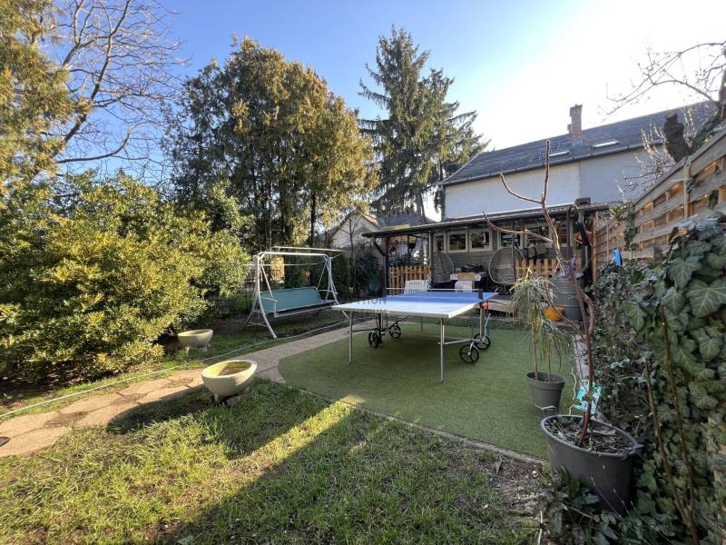 Budapest egyik legkedveltebb kertvárosi részén, Szent Imre-kertváros nyugodt, forgalomtól távoli utcájában kínálunk megvételre egy téglaépítésű, 5 szobás ikerházat, amely 470 m²-es saját telekrésszel rendelkezik.Az 1968-ban épült ingatlan az évek során több felújításon és bővítésen is átesett, így kényelmes és jól használható életteret biztosít. A bruttó 180 m²-es ház négy szinten helyezkedik el, praktikus elrendezéssel.ELRENDEZÉSFöldszint✅tágas nappali hangulatos kandallóval, erkélykapcsolattal✅előtér✅zuhanyzós fürdőszoba✅külön WC✅konyha étkezőrésszel✅beépített terasz✅nagy fedett teraszEmelet✅3 hálószoba✅közlekedő✅kádas fürdőszobaBeépített padlástér✅1 nagy szoba✅beépített tárolórészPinceszint✅kb. 30 m²-es garázs✅pincerész gépészettelMŰSZAKI JELLEMZŐKA fűtést egy új, korszerű Saunier Duval álló kondenzációs gázkazán biztosítja, amelyhez 100 literes melegvíz-tároló tartozik. A nappaliban található kandalló további komfortot és hangulatot teremt.Az ingatlan minden szinten betonfödémes, ami stabil szerkezetet biztosít.KÜLSŐ TEREK ÉS KERTA korábbi hátsó terasz beépítésre került, előtte pedig egy új, nagy méretű fedett terasz lett kialakítva, amely ideális családi és baráti összejövetelekhez.A kertben jelenleg egy új, nagyméretű faház (kerti tároló) épül betonalapra, amely elektromos kiállással kerül átadásra az új tulajdonosnak.PARKOLÁS➡️1 autó számára garázs➡️az ingatlan előtt és a telken belül további 3 autó parkolása megoldottA ház utcai frontján két szinten nagy erkély található felújított korláttal, valamint egy emeleti külső lépcső is kialakításra került.TOVÁBBI LEHETŐSÉGEKAz ingatlan könnyen kétgenerációssá alakítható, így nagycsaládosok vagy összeköltözők számára is kiváló választás.KÖRNYÉKSzent Imre-kertváros ezen része nagy telkekkel, szellősen elhelyezett családi-, iker és villaházakkal és széles, gondozott utcákkal rendelkezik, amely nyugodt, zöld környezetet és magas életminőséget kínál lakóinak.