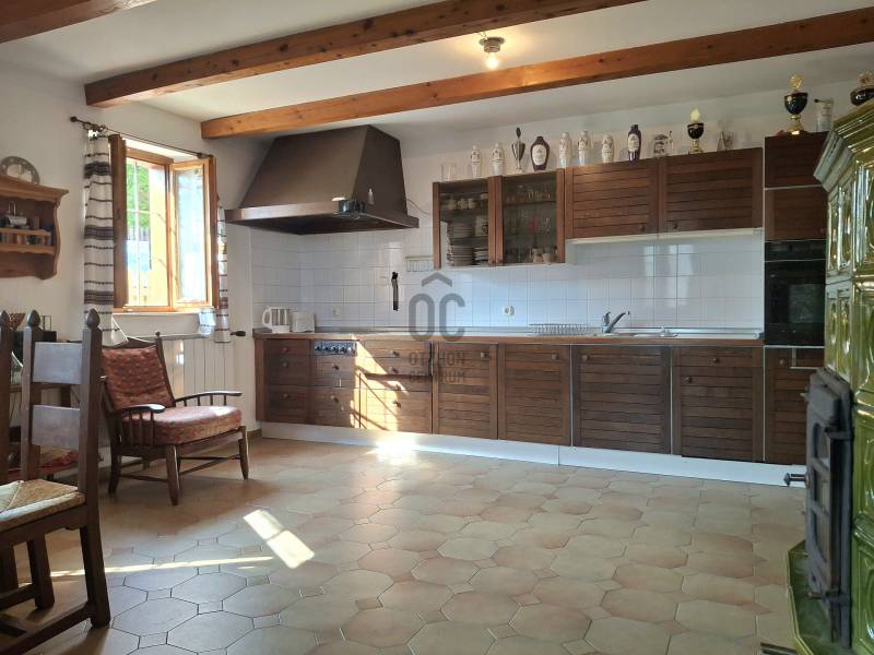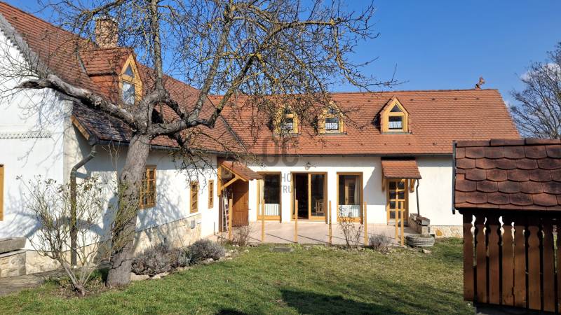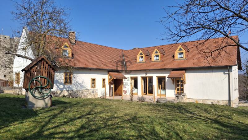 Különleges ingatlant ajánlok figyelmébe Nagyvázsony Ófalujában, kilátással a Kinizsi várra!A két bejárattal rendelkező főépület nagycsaládosoknak, de akár befektetésben ( szállásadás ) gondolkodóknak is tökéletes választás lehet.A HÁZRÓL : - 1995- ben épült, 36 cm-es téglából 4 cm-es hőszigetelő vakolattal, cserép héjazattal- műemlékvédelmi környezetben, a homlokzat kialakítása a fa nyílászárók ehhez alkalmazkodnak- fűtését gázkazán biztosítja radiátorokkal, kiegészítésként cserépkályhák is rendelkezésre állnak- az ingatlan összközműves, riasztórendszer bekötve- helyiséglista: 5 hálószoba, 3 fürdő+ 2 külön wc, nappali, konyha- étkező + az emeleti előterekben teakonyha, borospince, mosókonyha és kazánház- mindkét bejárat a teraszról nyílikALAPTERÜLETEK:-földszint: 131 m2-emelet: 71 m2-pincék: 41 m2-terasz: 35 m2-melléképület: 45 m2A TELEK:- a ház telekhatáron való elhelyezkedésének köszönhetően tágas, hangulatos udvar- a két helyrajzi számból álló telek mérete 935 m2- a melléképületben lévő tárolóból akár vendégszobát is kialakíthatunk, a nyitott része pedig nyári konyhának tökéletes- a telken álló kerekes kútból a locsolás szivattyúval megoldottAz ingatlan per- és tehermentes, rövid időn belül birtokba vehető. Az irányár tartalmazza a teljes berendezést.Nagyvázsony egy festői szépségű település a Balaton- felvidéken.Tapolca és Veszprém között a 77- es út mellett, 14 km-re a Balatontól.A település szívében található a híres Kinizsi vár, melynek felfedezése során betekintést nyerhetnek a középkori életbe.De a pálos kolostor romjai, a Néprajzi múzeum és a Postamúzeum is érdekes látnivalók.A közeli erdők és dombok remek lehetőséget kínálnak gyalogos és lovas túrázásra, kerékpározásra.Ha felkeltettem érdeklődését, szeretné megtekinteni vagy kérdése merült fel, várom megtisztelő hívását!