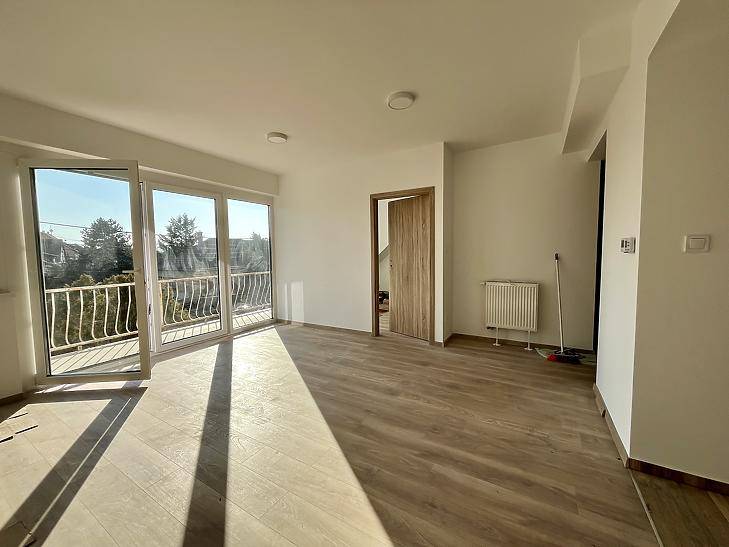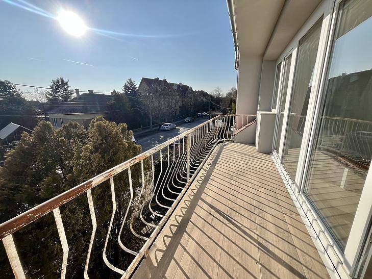 Felújított kétszintes lakás erkéllyel ZuglóbanEladó egy teljesen felújított, kétszintes lakás Zuglóban, családi házas övezetben, egy 90-es években épült, négylakásos kertes házban. Az épületben még három, hitelre is megvásárolható lakás elérhető.A hátsó kert és egy kb. 60 m²-es napozóterasz a lakók közös használatában van. A buszmegálló 2 perc sétára található, a belváros kb. 15 perc alatt elérhető.A lakás műszakilag és esztétikailag teljesen felújított, külön víz- és villanyórával.Az alsó szinten amerikai konyhás nappali déli tájolású erkéllyel, hálószoba és fürdőszoba található.A felső szintre csigalépcső vezet, ahol egy tágas szoba és egy második fürdőszoba kapott helyet.A fűtést központi gázkazán biztosítja hőmennyiségmérővel, kiegészítve helyiségenként szabályozható elektromos padlófűtéssel. A lakás beépített IKEA konyhával, minőségi szaniterekkel, háromrétegű ablakokkal, Velux tetőablakokkal, LED világítással és klíma kiállással készült.Az ingatlan azonnal költözhető.Alaprajz tájékoztató jellegű.