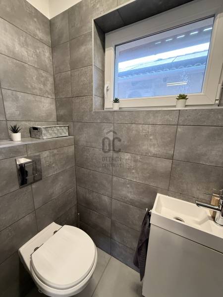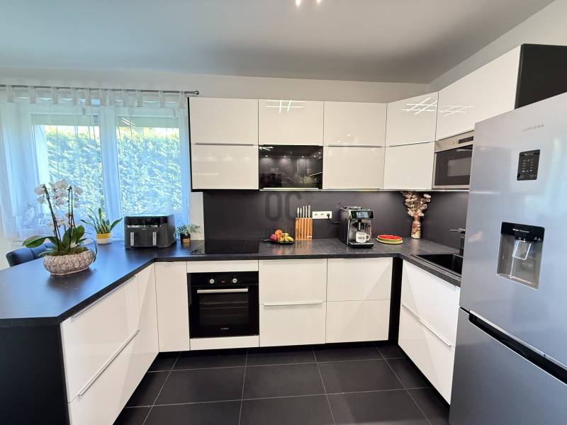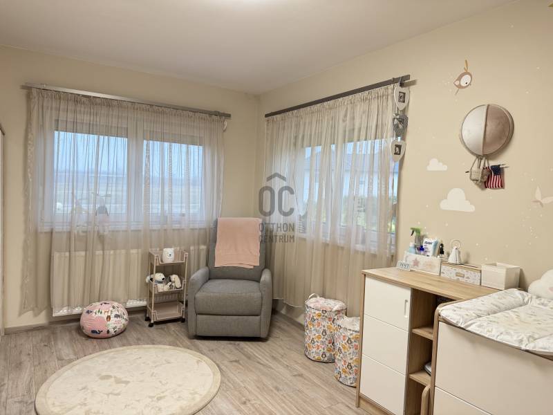 Modern, otthonos családi ikerház eladó Dunakeszin, a Malomárok Lakóparkban.Dunakeszi egyik legkedveltebb, nyugodt részén, a Malomárok Lakóparkban kínálunk megvételre egy 2018-ban épült, kiváló állapotú családi házat. Az ingatlan első tulajdonosoktól eladó.A ház bruttó 141 m², melyből 120 m² nettó lakótér, praktikus elrendezéssel, 5 szobával.Az ingatlan az ikerház másik felével kizárólag a garázsnál kapcsolódik.Földszint:•Vendégszoba / dolgozószoba•Tágas, világos amerikai konyhás nappali•Kamra•Fürdőszoba WC-velEmelet:•3 kényelmes hálószoba•Külön WC•Külön fürdőszobaMűszaki tartalom, extrák:•Gázkazános fűtés, padlófűtés és radiátorok kombinációjával•2 db hűtő-fűtő klímaberendezés•BWT vízlágyító rendszer•Minden nyílászárón alumínium redőny és szúnyogháló•Gondozott kert gyepszőnyeggel, növényekkel és automata öntözőrendszerrel•27 m²-es fedett terasz, ideális pihenéshez és a nyári grillpartykhoz•10 m²-es kerti faházKörnyezet, elhelyezkedés:•M2 és M0 autóút gyors elérhetőség•Belváros 20-25p alatt elérhető•Csendes, nyugodt lakókörnyezet•Közelben bevásárlási lehetőségek, iskola, óvoda a közelben•A Duna-part 5–10 perc sétára, kiváló kikapcsolódási lehetőségekkelA vételár tartalmazza a berendezés nagy részét a beépített bútorokon kívül is. (Játszótér, kerti sütögető stb.) Komoly szándék esetén ezek egyeztetésre kerülnek.Ez az ingatlan tökéletes választás azok számára, akik modern, jól felszerelt, gyorsan költözhető otthont keresnek Dunakeszin.
