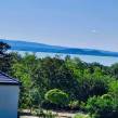 ELADÓ RÉVFÜLÖPÖN REMEK ÁLLAPOTÚ, KÜLÖNLEGES ELHELYEZKEDÉSŰ TÖBB GENERÁCIÓS, PANORÁMÁS NYARALÓ . AZ OTTHON CENTRUM KIEMELT AJÁNLATA !A gyönyörű, gondozott kert ideális, 1266 m2 nagyságú, közel négyzet alakú. Páratlan nyugalmas környezet: Közforgalomtól védett, csak két tulajdonos által használt, zárt magánúton közelíthető meg a belterületi telek, a Kacsajtosi útról, az utcafronttól 60 méterre. Pár perc séta az erdő, a központ és a strand gyalog 10/15 percnyire van. Az épület főbb jellemzői:A ház déli irányba, a tó felé tájolt. 2009-ben épült téglából, cserép fedéssel, nyílászárói műanyagok, Új, a 3 fázisú földkábeles villanyvezeték. Fűtése egyrészt a központi helyiségben lévő takarékos üzemű, megbízható klasszikus skandináv tömegkályhával történik, a földszinti fürdő és az egész tetőtér elektromos padlófűtésű. Emellett hűtő/fűtő klímákkal is temperálhatók a helyiségek. Gáz igény szerint az utcáról elérhető. Csatorna nics, a szennyvíztároló modern, biológiai lebontású.A múlt évben megújult mindhárom fürdőszoba, a tetőtéri halószoba elé egy 11 m2-es terasz készült. Alatta félkör alakú, nagyrészt fedett teraszt alakítottak ki. A ház mellett hangulatos, fa szerkezetű fedett nyári pihenő van, mellette apácarácsos fatároló. A kert alján 3 autó számára alkalmas kocsibeálló létesült. Az épületet tágas terek, és kicsi meghitt kuckók teszik idilli nyaralóvá / otthonná akár nagyobb család, illetve több generáció számára. Használati beosztása:A földszintet L alakú nappali - étkező - konyha foglalja el, valamint fürdő toalettel. Járólapokkal borított lépcső vezet a félemeletig, ahol egy kis közlekedőből hálószoba, hálófülke és néhány további lépcsőfokkal egy háló galéria érhető el. Szép, új falépcső visz a tetőtérbe. Itt a közlekedő egyik feléből egy nagyobb, terasz kapcsolatos háló nyílik, a másik oldalán bájos teakonyha, mögötte fürdő. A terasz balatoni panorámáját nem zavarják villanyvezetékek!Egy külső bejáratú kedves, egyszobás fürdőszobás kicsi apartman szolgálhat még szállásul vendégeknek, fiataloknak. A korábbi, eredeti borospince is innen érhető el. Az ingatlan tehermentes, 1/1 tulajdoni hányadú, belterületi. A tulajdoni lapon gazdasági épületként feltüntetett. Rövid határidővel költözhető.Ha felkeltette érdeklődését ez a befektetésnek is remek lehetőség, megtekintése rugalmasan megoldható.Az adatok kizárólag a megbízóink által rendelkezésünkre bocsátott információkon alapulnak. Fentiekre tekintettel, az adatok teljességéért, helyességéért és aktualitásáért nem vállalunk felelősséget.Az árváltozás, adatmódosítás és közbeni értékesítés jogát fenntartjuk, mindezekért jogi felelősséget nem áll módunkban vállalni.