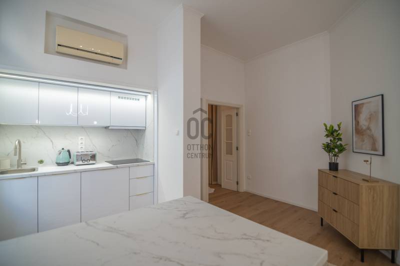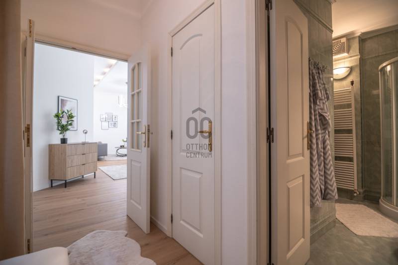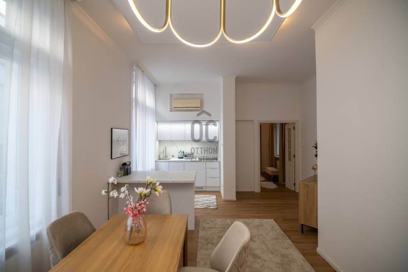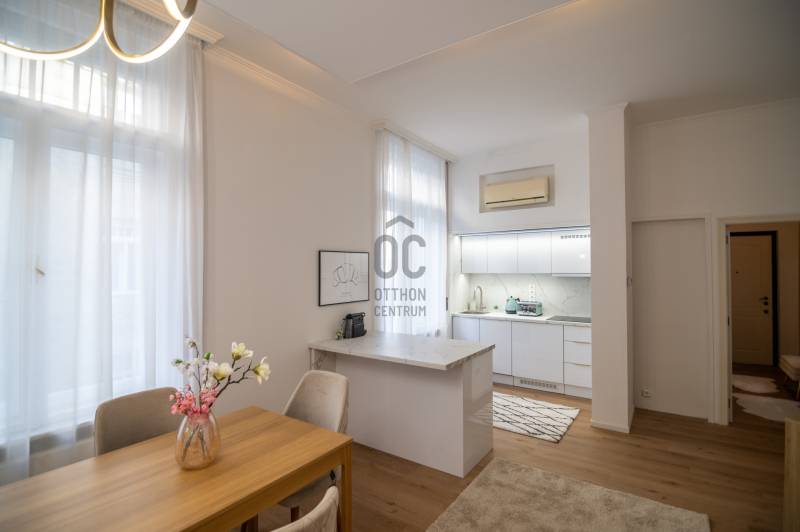Budapest belvárosának egyik hangulatos V. kerületi sétálóutcájában, a Haris köz patinás épületében kínálok eladásra egy 57 nm-es, 2 szobás, 2. emeleti lakást. Az ingatlan egy rendezett, kis lakóközösségű társasházban található, amely zárt lépcsőházzal és lifttel rendelkezik. A lakás frissen felújított állapotú, tágas terekkel és nagy belmagassággal, így világos és különleges hangulatú otthont kínál új tulajdonosának.A LAKÁSRÓL:Az ingatlan a nagy belmagasságának köszönhetően rendkívül tágas és világos érzetet nyújt.A nappali a sétálóutcára néz, míg a hálószoba a csendes belső udvarra, így a lakás jól ötvözi a városi hangulatot és a nyugodt pihenést.A lakás frissen felújított, az ablakok extra hangszigeteléssel vannak ellátva, így a központi elhelyezkedés ellenére is csendes.A konyha teljesen gépesített, a lakásban két klímaberendezés is található, amelyek a nyári hűtést és az átmeneti időszakban a fűtést is segítik. A fűtésről cirkó gázkazán gondoskodik.A lakásban található bútorok megegyezés tárgyát képezik.A HÁZRÓL:A társasház kis lakóközösségű, rendezett, zárt lépcsőházzal rendelkezik, valamint lift is található az épületben, ami még kényelmesebbé teszi a mindennapokat.LOKÁCIÓ:Az ingatlan Budapest belvárosában, a Haris közben található, egy csendes, hangulatos sétálóutcában. A Váci utca, a belváros egyik legismertebb bevásárló- és sétálóutcája, mindössze pár perc sétára, a Haris köz párhuzamos utcájában helyezkedik el, így a lakó mindennapi bevásárlása és a városi élet könnyen elérhető. A környék rendkívül frekventált, számos étterem, kávézó, üzlet és szolgáltatás található a közelben. A tömegközlekedés kiváló, a környéken busz- és villamosjáratok, valamint a metróvonalak könnyen elérhetők, így a város bármely pontja gyorsan megközelíthető. A lakás ideális azok számára, akik szeretnének közel lenni a belváros nyüzsgéséhez, ugyanakkor csendes és nyugodt otthont keresnek.AJÁNLOM:Ideális választás lehet saját otthonnak, városi lakásnak vagy befektetésnek egyaránt.További információért és megtekintés egyeztetéséhez keressen bizalommal!Egyedi igényekre szabott lakáshitelekkel állunk rendelkezésére.Bankfüggetlen Hitelcentrumunk az országban elérhető összes bank és hitelintézet ajánlatát versenyezteti az Ön számára díjmentesen.Munkatársaink nagy szakmai tapasztalattal, teljes körű CSOK PLUSZ és OTTHON START PROGRAM ügyintézéssel várják Önt előre egyeztetett időpontban akár a normál munkaidő után is.