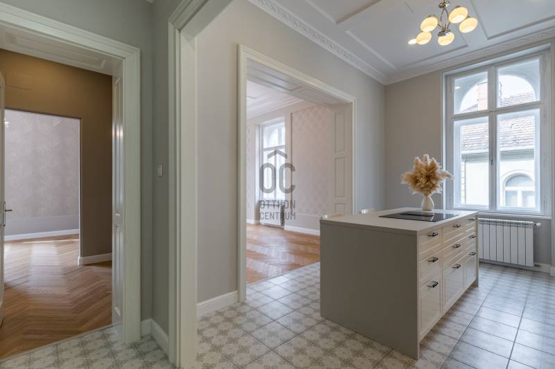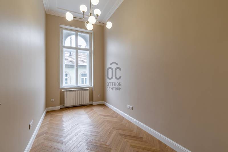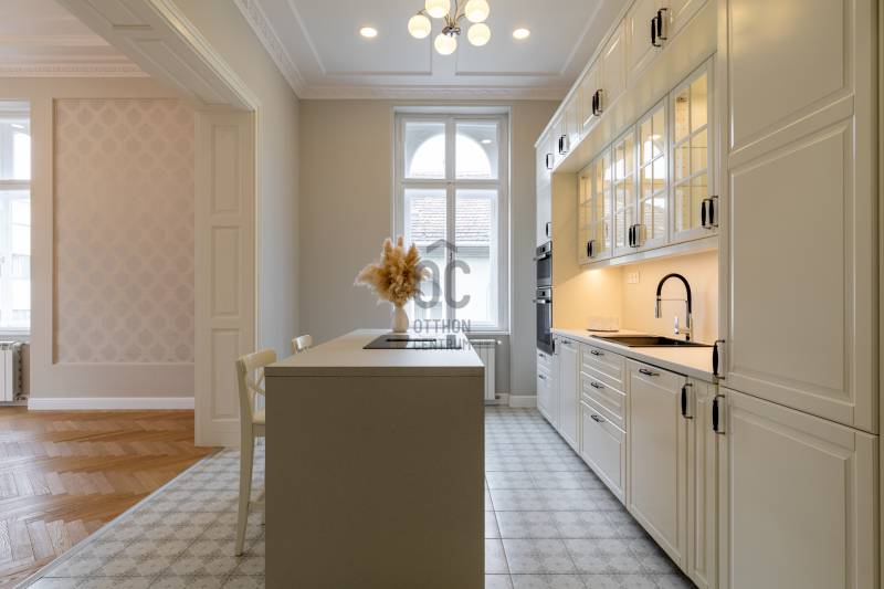 Üdv itt, ahol az arányok, a részletek és a történeti közeg együtt adnak biztonságot – döntésekhez, pihenéshez, jelenléthez. – Üdv itthon!RÖVID ÖSSZEFOGLALÓBudapest VI. kerületében, az Andrássy út diplomáciai tengelyén, egy liftes, felújított, négyemeletes történelmi társasház 3. emeletén elhelyezkedő, DNY-i tájolású, nettó 88,96 m²-es (85 m² tulajdoni lap szerint), 3 szobás, 2 fürdőszobás felújított világos tágas lakás, gázkazános központi fűtéssel, radiátoros hőleadással, a külső homlokzati falakon falfűtéssel, valamint a hidegburkolatok alatt temperáló padlófűtéssel kialakítva.LOKÁCIÓNem véletlenül született meg az Andrássy út ott és úgy, ahogyan ma ismerjük.A 19. század végén Budapest tudatos városépítészeti döntést hozott: létre kellett hozni egy reprezentatív sugárutat, amely összeköti a belvárost a Városligettel, és közben megmutatja a város kulturális ambícióját és európai rangját. Az út eleve a polgári elitnek, a művészeti életnek és a diplomáciának készült – megérkezésre, jelenlétre, státuszra.A különlegesség nemcsak a felszínen érzékelhető.A Millenniumi Földalatti Vasút megépítésekor – amely a kontinens első földalattija volt – a kiemelt föld jelentős részét nem szállították el, hanem a környező telkekhez, villák kertjeibe hordták. Ezekből a feltöltésekből alakultak ki a finom szintkülönbségek, a megemelt terepszintek, a magasabb lábazatok. A város szó szerint saját anyagából formálta tovább ezt a környezetet, és ez a réteg ma is jelen van az Andrássy út mentén.Ma is azonnal érezhető ez az örökség. A hangulat előkelő, a lépték tudatosan nagyvonalú, a ritmus lassabb és kiszámíthatóbb. A homlokzatok ritmusa, a kettős fasor fegyelmezett íve és az út nagyvonalú szélessége együtt teremti meg azt az időtálló városi élményt amihez foghatót nem találunk máshol Budapesten. Néhány perc sétával elérhető a Magyar Állami Operaház, az Operettszínház, valamint több színház, koncert- és kiállítótér, így a kulturális élet itt a mindennapok természetes része. Galériák, klasszikus kávéházak és elegáns éttermek rajzolják ki azt az egyedi hangulatú közeget, ahol az esti programok és a nappali városi élet szervesen összekapcsolódik. Városi szinten az Oktogon közelsége kiemelt jelentőségű. Ez Budapest egyik legfontosabb közlekedési csomópontja, ahol az M1-es metró, a körúti villamoshálózat és több buszjárat találkozik. Innen a belváros, az üzleti negyedek és a pesti városrészek gyorsan, logikus útvonalakon érhetők el.További külön réteget ad az elhelyezkedéshez a Városliget közelsége. A park nemcsak zöldfelület, hanem múzeumok, sétányok, sport- és rekreációs terek összefüggő rendszere, egy hatalmas tóval, ahol szép időben csónakázni, télen korcsolyázni lehet. Ritka adottság, hogy egy ilyen jelentőségű kulturális és természeti tér néhány perc távolságban legyen egy diplomáciai és művészeti központtól.Az Andrássy út UNESCO Világörökségi státusza hosszú távú védelmet és értékállóságot biztosít. Az egységes utcakép, az építészeti minőség és a környezet stabilitása évtizedek óta vonzza a diplomatákat, külföldi vezetőket és tudatos befektetőket.Ez a lokáció több mint jó elhelyezkedés. Olyan városi pozíció, ahol történet, kultúra és presztízs egymást erősítve van jelen.ÉPÜLET - Hübner udvar Az Andrássy út palotái között a Hübner-udvar azok közé az épületek közé tartozik, amelyek világos építészeti gondolkodás mentén születtek. Az épület 1883–1884 között, francia neoreneszánsz stílusban épült, tervezője Bukovics Gyula. A korszakban ez a stílus a városi rang, a polgári stabilitás és a nemzetközi szemlélet egyik legmarkánsabb kifejeződése volt. A homlokzat arányos és fegyelmezett, részleteiben gazdag, összhatásában visszafogott. A térszervezés és az anyaghasználat tudatos, időtálló logikát követ, amely ma is jól értelmezhető – mind használati, mind piaci szempontból. Ez az a minőség, amely nem korhoz kötött, hanem értéket tart.A belső udvar és a lépcsőház kialakítása rendezett, nyugodt érkezést biztosít. Az épület működése átlátható, a közös terek arányai kiegyensúlyozottak, ami az első pillanattól érzékelhető komfortot ad. Ez különösen fontos azok számára, akik hosszabb távon gondolkodnak, vagy nemzetközi környezetben mozognak. Az épület 2023-ban befejezett, átfogó felújításon esett át. A közös terek, a gépészeti rendszerek és a lift korszerűsítése során az eredeti építészeti karakter megőrzése volt az irány, a mai használati elvárásokhoz igazítva. Az eredmény egy rendezett, jól karbantartott, megbízhatóan működő társasház. A négyszintes, liftes épület 3. emeletén elhelyezkedő lakás pozíciója kiegyensúlyozott: megfelelő távolság az utca ritmusától, miközben megmarad a kapcsolat az Andrássy út városi jelenlétével. A lakóközösség jellemzően igényes, nemzetközi szemléletű, ami tovább erősíti az épület értékét.Ez az épület érdemben emeli az itt található ingatlanok pozícióját. Stabil alap azoknak, akik presztízst, biztonságot, átláthatóságot vagy egyszerűen jó döntést keresnek.A LAKÁS – elosztás, hangulat, használhatóságBelépéskor egy jól szervezett közlekedőtér fogad, amely végigvezeti az érkezőt a lakáson. Innen minden helyiség külön nyílik, így a funkciók tisztán elkülönülnek, mégis egy összefüggő rendszerben maradnak. Ez az elrendezés átlátható, nyugodt működést ad, és nem kényszerít kompromisszumokra a mindennapokban. Középpontban a nappali és a konyha kapcsolata áll. Önálló karakterű konyhatér kapcsolódik az