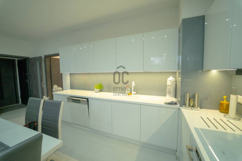IV. kerületében, Káposztásmegyer egyik legszebb, zárt és exkluzív lakóparkjában kínálunk megvételre egy újszerű, mindössze 2 éve épült, 4 szobás, prémium kivitelezésű lakást.Az ingatlan minden részletében a minőséget és a kényelmet képviseli. Egyedi, prémium asztalosmunkák, magas minőségű, gépesített konyhabútor Bosch készülékekkel, elektromos redőnyök, valamint 3 rétegű hő- és hangszigetelt nyílászárók szolgálják a mindennapi komfortot. A modern gépészetnek köszönhetően hőszivattyús mennyezeti hűtés-fűtés rendszer és padlófűtés biztosítja az energiatakarékos és egyenletes hőmérsékletet egész évben. Az otthonhoz tartozik egy nagyméretű, kényelmes erkély is, amely ideális helyszín reggeli kávézáshoz vagy esti kikapcsolódáshoz.A mélygarázsban egy parkolóhely 10 M Ft-ért és két tároló összesen 12 M Ft-ért kötelezően megvásárolandó.A lakás egy fiatal, rendezett, zárt lakóparkban található, amelyet igényesen parkosított, gondozott zöldterületek, belső sétányok és magas szintű biztonság jellemez. A lakóközösség kulturált, a környezet nyugodt, mégis kiváló infrastruktúrával rendelkezik: a közelben bevásárlási lehetőségek, oktatási intézmények, tömegközlekedés és szabadidős lehetőségek egyaránt megtalálhatók.Ez az ingatlan ideális választás családoknak vagy azoknak, akik modern, energiatakarékos, exkluzív környezetben szeretnének élni Újpest egyik legkedveltebb részén.Amennyiben egy valóban újszerű, prémium minőségű otthont keres zöld környezetben, mégis kiváló elérhetőséggel, ez a lakás tökéletes választás lehet.