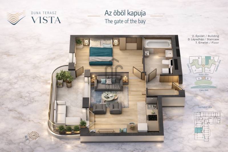 Tervezett átadás: 2026. november-decemberA 2026-ban átadásra kerülő Duna Terasz Vista C épületében eladó egy 7. emeleti kétszobás új építésű lakás, dunai részpanorámával.ÖBÖL-PARTI SÁVA Duna Terasz Vista lábánál húzódó öböl-parti terület - átadás után - pihenőpadokkal megszakított lépcsős, füves rézsűvé és part menti sétánnyá alakul, melyről akadálytalanul élvezhető lesz az utánozhatatlan szépségű táj és a hajókikötő egyedülálló atmoszférája.ENERGIAHATÉKONYSÁGA levegő-víz hőszivattyúval kombinált mennyezeti hűtő és fűtő rendszer energiatakarékos működés mellett kiváló hőérzetet is biztosít az AA energiahatékonyságú otthonokban. A kétszintes mélygarázsban e-töltő előkészítésű parkolóhelyek is elérhetőek, ezzel segítve a zöld autózás élményét.DUNA TERASZ VISTA LOKÁCIÓA Foka-öböl mélykék, csillámló víztükre, a mindent körbeölelő természet friss illata, a Duna-parti sétány andalgásra csábító térkövei és a lélegzetelállító naplementék megélése Budapest egyik legjobban őrzött titkai közé tartozik. Pár percre a Váci úti irodafolyosótól és a belváros lüktetésétől megszűnik a rohanás és egy nyugodt, csendes, elegáns lakóövezetbe érkezhetünk haza.A Duna Terasz Vista a Cserhalom utca, Csele utca, Fedélköz utca és a Foka-öböl által határolt területre épül, a Duna Terasz Grande és a folyómenti kalandok közvetlen szomszédságába.XIII. MARINA PART - ahol a Duna-parti életérzés találkozik a belváros közelségévelA budapesti Duna-part egyik legexkluzívabb lakóövezete a XIII. kerületben található Marina part, ahol a természet közelsége és a modern nagyvárosi élet tökéletes harmóniában él együtt. A vízparti panoráma, a rendezett, parkosított környezet és a magas színvonalú építészeti megoldások egyedülálló életteret teremtenek azok számára, akik nem szeretnének kompromisszumot kötni a kényelem és az elhelyezkedés terén.Kiváló elhelyezkedés – percek alatt a belvárosbanA Marina part mindössze:10–15 perc autóval a belvárostól15–20 perc tömegközlekedéssel (M3 metró, villamos, busz)20–25 perc kerékpárral a Parlament vagy a Nyugati tér környékéreA közelben található a Váci út irodafolyosó, a Duna Plaza, valamint számos étterem, kávézó és bevásárlási lehetőség.Várom hívását, keressen bizalommal.
