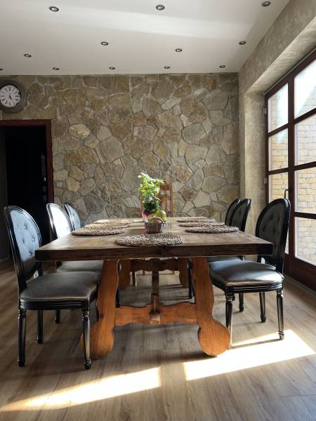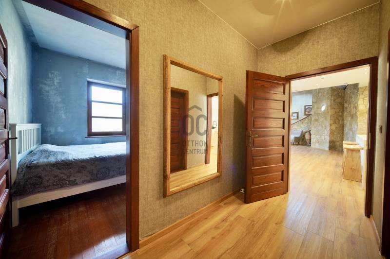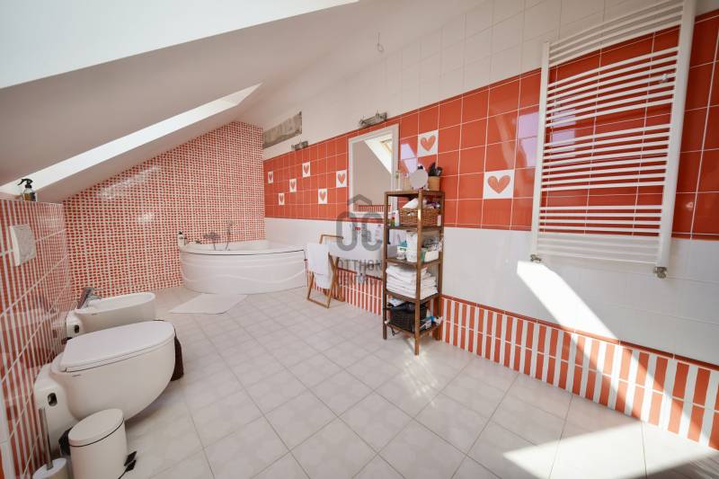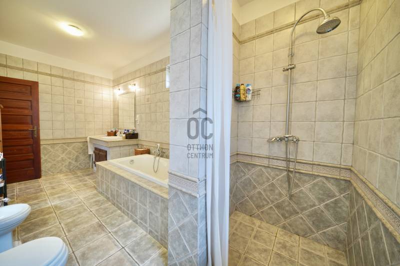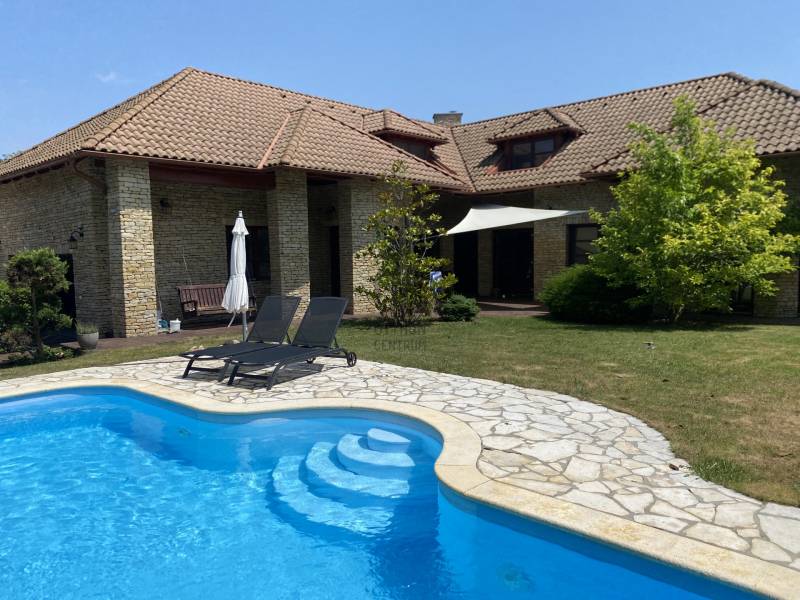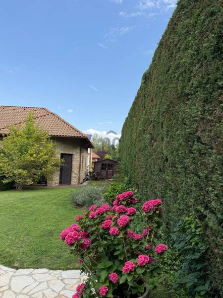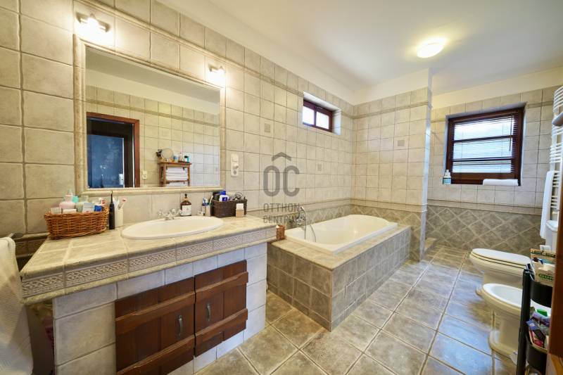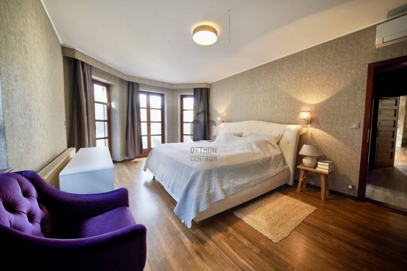 Mogyoród kedvelt, nyugodt részén, a Szentjakab Lakóparkban kínálunk megvételre egy kivételes adottságokkal rendelkező, önálló családi házat, amely ideális választás mindazok számára, akik a minőséget, a kényelmet, a csendes és természetközeli otthonukat keresik.A 910 m²-es saroktelken elhelyezkedő, háromszintes ingatlan nettó 318 m² lakóterülettel rendelkezik. A tágas, világos terekhez 270 cm-es belmagasság társul, amely tovább erősíti az otthon exkluzív érzetét.A ház földszintje teljes körűen megújult, itt kapott helyet egy modern, prémium minőségű, teljesen felszerelt konyha, bőséges tárolókapacitással és beépített hűtőszekrénnyel. Az alsó szinten padlófűtés biztosítja a komfortot, amely gázcirkóval és hőszivattyús rendszerrel, kombinált megoldásként működik. Több helyiségben egyedileg tervezett, minőségi beépített bútorok találhatók.A teljes felső szint klímatizált.Az ingatlan számos előkészítéssel rendelkezik:– kandalló előkészítés– riasztórendszer előkészítésA ház energiahatékonyságát 10 kW-os, még 8 évig szaldós elszámolású napelemrendszer biztosítja (3×32 A), amely jelentősen csökkenti a fenntartási költségeket.( vilanyszámla nulla forint !) A gondozott kert valódi pihenőoázis:– 85 m²-es teraz-külön nyári grill terasz,konyhával– 8 × 3,5 × 1,5 méteres, fűthető medence, amely saját gázkazánról kapja a fűtést ha erre szükség van.– igényesen kialakított zöldfelületek-automata öntözőrendszerAz épület belső és külső megjelenését egyaránt gyönyörű, prémium kőburkolatok teszik időtállóvá és elegánssá.Az ingatlanhoz önálló pince, tároló és az ár részét képező garázs is tartozik. A közlekedés kiváló: az M3-as autópálya néhány perc alatt elérhető, a tömegközlekedési Hév megálló pedig mindössze kb. 3 perc sétára található.A Szent Jakab park falu egy 0-24-es porta szolgálattal védett, csendes zöld környezetben található kis oázis. Havi 25.000 ft közös költséget kell fizetni melybe bele tartozik az állandó biztonsági szolgálat, takarítás, közterületi ház előtti kert karbantartása. Ez az ingatlan ideális választás nagyobb családok számára, illetve azoknak, akik kompromisszumok nélkül szeretnének modern, jól felszerelt, értékálló otthont egy csendes, mégis kiváló infrastruktúrával rendelkező környezetben.Amennyiben felkeltette érdeklődését, kérem, forduljon hozzám bizalommal a megtekintés egyeztetése érdekében.Ez az ingatlan a \"Felező csomag\" megbízási portfólióhoz tartozik. Részletek az Otthon Centrum weboldalán.