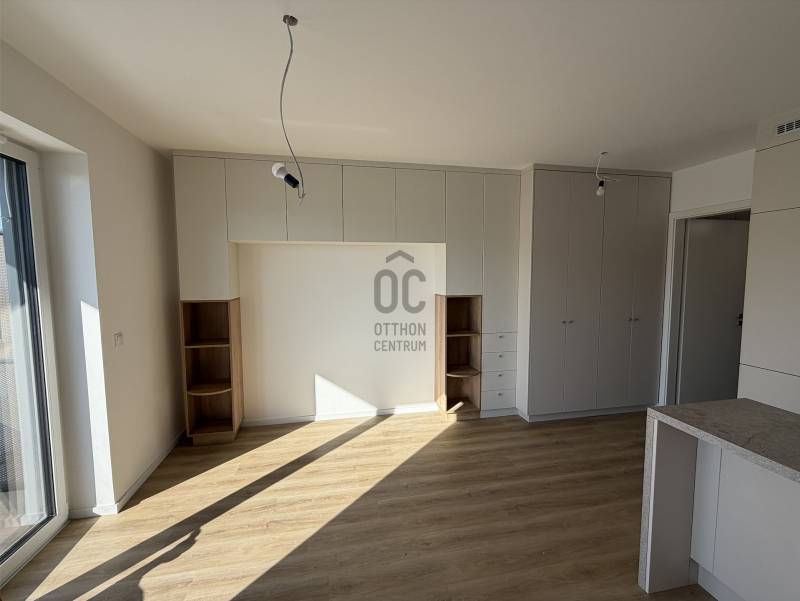 A 2025-ben átadott Kassák Terrace épületben, mely Budapest XIII. kerületének kedvelt, családias hangulatú övezetében található, a Váci úttól csupán egy utcányi távolságra és 3 perc gyalogos távolságra az M3 metrómegállótól (Göncz Árpád Városközpont) eladó berendezett stúdiólakás teljesen új beépített bútorokkal, gépesítéssel együtt. (MELYET AZ ÁR TARTALMAZ).A tér és helykihasználás rendkívül fontos szerepet kapott a lakásban, így minden beépített bútor mennyezetig ér. Kasmír színű beépített bútor, fával ötvözve került kialakításra az előszobában, fürdőben, konyhában + praktikus étkező asztal illetve a nappaliban is.Beépített gépek:BOSCH hűtő +mélyhűtő, mikro, mosogató, BLANCO mosogató tálca, indukciós főzőlap, sütő, mosógép, porszívó. Garanciával együtt!Nyugati tájolású, nagyon világos, extra benapozottságú 6.emeleti lakás, melyhez tartozik egy panorámás, fedett erkély is.Műszaki tartalom:-A+ energetikai besorolású Kassák Terrace lakásai felület hűtéssel-fűtéssel, hőszivattyús megoldással- Három rétegű műanyag nyílászárók-Okos otthon rendszer telefonos applikációval-Még műszaki garanciás a lakás!Közösségi szolgáltatások az épületben:-közösségi nappali (üzleti találkozók, meetingek lebonyolítására)-office corner (iroda-nyomtatási lehetőséggel)-Fészer: A lakók számára kialakított szerszámoskamrában a legfontosabb eszközök és berendezések mind megtalálhatóak, ha kisebb műszaki munkát vagy szerelést akarnak elvégezni otthonukban.- Csomagpont: A társasházban kialakított 0–24 órás csomagpontnak köszönhetően otthon sem kell lenniük ahhoz, hogy rendelt csomagjukat átvegyék.-Közösségi autó: A városban egyre nagyobb fejtörést okoz a közlekedés, és még inkább a parkolás. A LIVING lakók a wigo prémium autómegosztó szolgáltatását is igénybe vehetik, ha sürgősen szükségük van járműre.Legyen Ön a lakás első lakója!INFRASTRUKTÚRA:Tömegközlekedési lehetőség: 3 perc gyalogos távolságra M3 metrómegálló (Göncz Árpád Városközpont), 5 percre: Lehel úti villamos.Épület alatt közvetlenül SPAR, kávézó, Pilates stúdió, egyéb üzletek találhatóak.Nem tartozik kötelezően megvásárolandó beálló vagy tároló az ingatlanhoz, de van lehetőség ezek megvásárlására beruházótól.