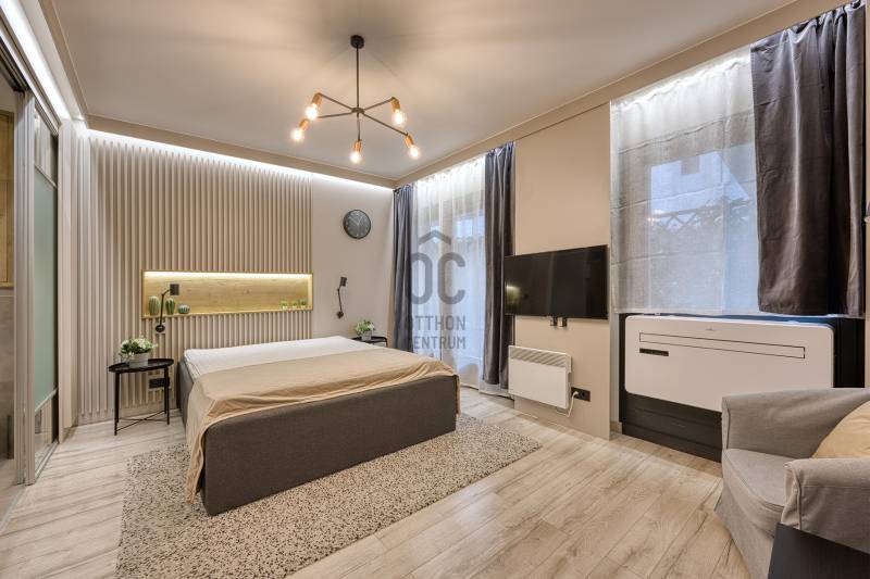 Kiadó egy kivételes, luxus garzonlakás Budapest belvárosában, a Belső VI. kerületben, egy exkluzív, medencés társasházban a nyüzsgő Király utcában. Ez a modern, 2018-ban épült épület a legkorszerűbb technológiákat és luxus szolgáltatásokat kínálja. A lakók kényelmét 24 órás portaszolgálat, tetőterasz, medence, fitnesz és szauna, valamint a földszinten számos üzlet és étterem szolgálja.A lakás földszinti, 27 négyzetméteres alapterülettel és egy 4 négyzetméteres terasszal rendelkezik.Kiváló állapotú, AA energetikai besorolású, így nemcsak környezetbarát, hanem gazdaságos is.A lakás teljesen felszerelt, gépesített, benne hűtő, fagyasztó, villany főzőlap, villanysütő, mosogatógép, kivezetett páraelszívó stb.Az épület új modern alapanyagokból, kortárs technikával, hőszigeteléssel ellátott homlokzatú. Az új ház külseje nem véletlenül idézi a klasszicizmus korszakát: sokat megélt és sokat emlegetett elődjét ugyanis a Pest arculatának formálásában jelentős szerepet játsztó Hild József tervezte bő 170 évvel ezelőtt. Az 1844-ben átadott épületnek még a pezsgő életéről ismert Király utcában is különleges kultúrtörténeti jelentősége van, hiszen itt nyílt meg 1869-ben Gundel János első étterme. Az épület homlokzat mögötti terei teljesen kortárs stílusúra tervezték. A K40 apartmanház 106 különböző méretű (28–95 négyzetméter alapterületű) luxuslakás került kialakításra.Amennyiben felkeltette érdeklődését az ingatlan, esetleg szeretné megtekinteni, kérem hívjon bizalommal!