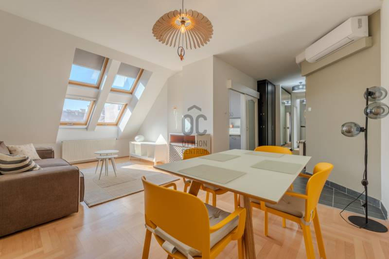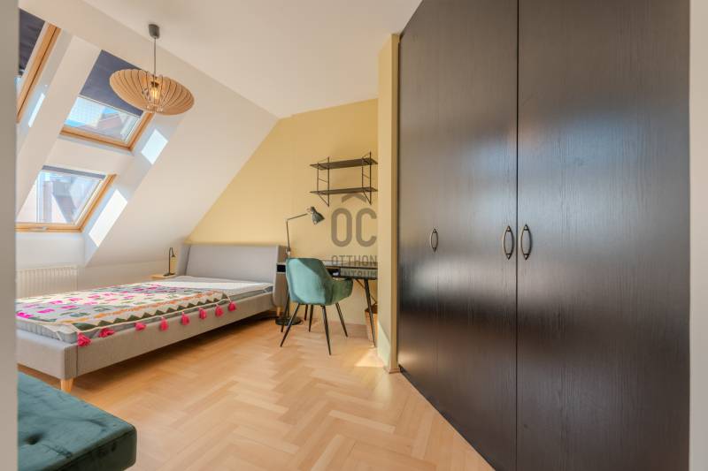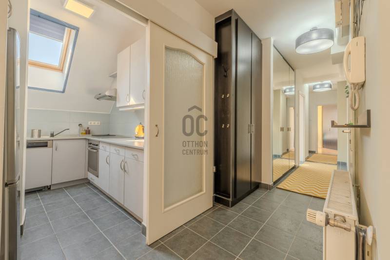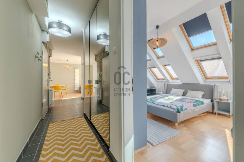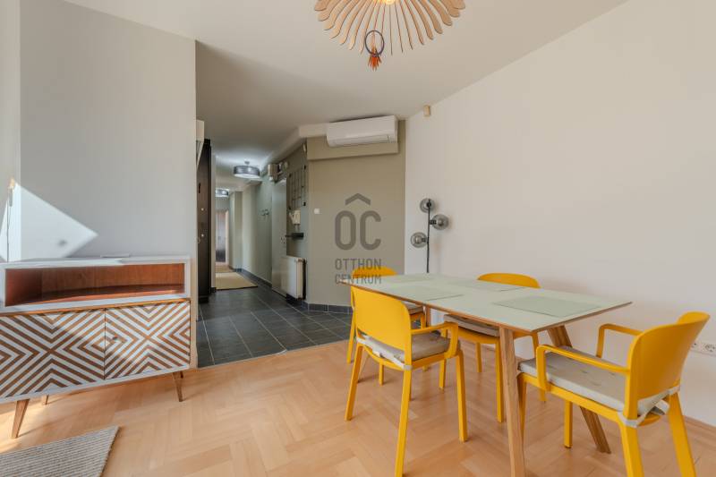 Élj a pezsgés központjában! – Design lakás a Gozsdu Udvarnál Eladó egy világos, nettó 65 nm-es, 3 szobás otthon Budapest legmenőbb negyedében, a VII. kerületi Holló utcában! Ez az ingatlan nem csupán egy lakás, hanem egy belépő a főváros lüktető szívébe.Az ingatlanról: Stílus és kényelemA lakás a társasház 5. emeletén (tetőtér) található, így a város felett, mégis a sűrűjében élhetsz.Elrendezés: Tágas, amerikai konyhás nappali + 2 külön nyíló szoba.Állapot: Jó állapotú, minimalista design, ami azonnal költözhető.Extrák: Klíma a nyári hőség ellen, házközponti fűtés a téli estékre.Biztonság: 24 órás portaszolgálat és biztonsági ajtó vigyáz rád.Akadálymentes: Modern lift és könnyű megközelíthetőség.Ahol a világ találkozik: Belső-ErzsébetvárosHa ide költözöl, felejtsd el az autót! A környék a főváros turisztikai és kulturális epicentruma.Buli negyed & Gozsdu: A lakás a híres Gozsdu udvar közvetlen szomszédságában található. A legjobb romkocsmák, speciality kávézók és street food helyek szó szerint a lábaid előtt hevernek.Infrastruktúra: Pár perc sétára minden megtalálható: élelmiszerüzletek, drogériák, edzőtermek és galériák.Közlekedés: Kitűnő csomópont! Az M1, M2, M3 metróvonalak (Deák Ferenc tér), valamint a 47-49-es villamosok és éjszakai járatok pillanatok alatt elérhetőek. Bárhová is mész a városban, innen te érsz oda a leggyorsabban.Miért válaszd ezt a lakást?Ez az otthon tökéletes választás, ha imádod a városi nyüzsgést, de a lakásodba belépve egy csendes, világos és biztonságos menedékre vágysz. Befektetésnek is kiváló, hiszen a környék idegenforgalmi értéke miatt a lakás kiadhatósága kiemelkedő.Ne maradj le róla! A belváros ezen része sosem megy ki a divatból.Szeretnéd élőben is látni?Kérdésed van, vagy megtekintenéd az ingatlant? Keress bizalommal, és mutatom az utat az új életedhez!