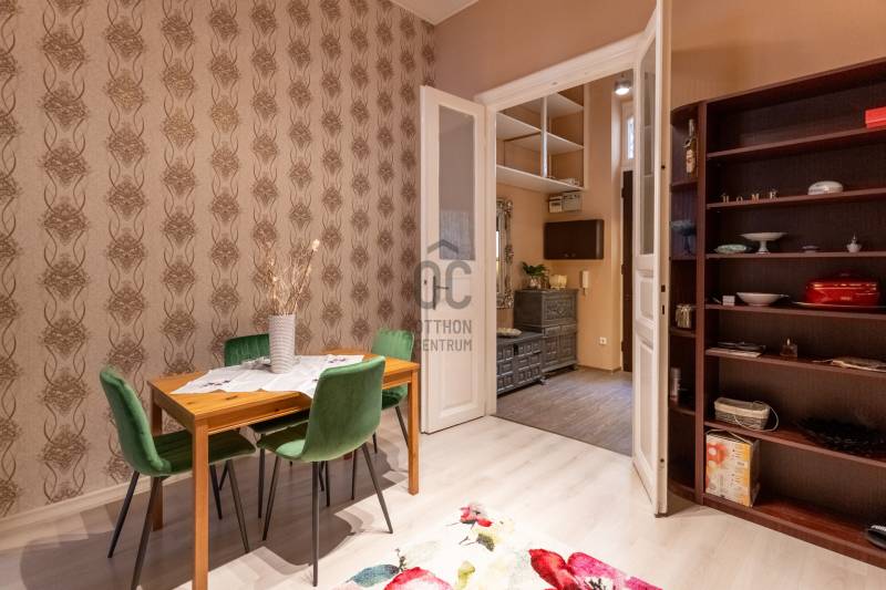 Reggel kávé a közeli Hunyadi téren, napközben a város pezsgése, este pedig csend és elegancia – ez a lakás ezt az életérzést adja. Az a ritka otthon, amely egyszerre inspiráló, nyugodt és értékálló, és ahol a belvárosi élet minden előnye kézzelfogható közelségben van.A VII. kerület egyik legkeresettebb részén, a Király utcában, a Hunyadi tér közvetlen közelében kínálunk megvételre egy kivételes hangulatú, nagypolgári lakást.A LAKÁS:-61 m²;-2 szoba;-2. emelet;-Utcai nézet, délnyugati tájolás;-Liftes épület-Kiemelkedően jó benapozottság;-398 cm belmagasság – nagypolgári terek;-20.000 Ft közös költség;-Elektromos kályha fűtés;-A konyhából könnyen kialakítható egy 3. szoba.A HÁZ:-Millenniumi Budapest építészete;-Liftes társasház;-Szép, karbantartott belső homlokzat, elegáns belső udvar;-Rendezett, díszes külső homlokzat;-1897-ben épült társasház.LOKÁCIÓ:- Erzsébetváros dinamikusan fejlődő, értékálló része;- Éttermek, kávézók, design üzletek, galériák és kulturális helyszínek a közvetlen közelben;- Erős bérbeadási potenciál;- Kiváló infrastruktúra: bevásárlási lehetőségek, gyógyszertár, egészségügyi szolgáltatások, iskolák;-2 perc sétára a Hunyadi tér.KÖZLEKEDÉS:-70, 78 trolibusz – 1 perc;-4–6-os villamos (Király utca / Erzsébet körút megálló) – 2 perc;-M1 metró (Vörösmarty utca) – kb. 5 perc;-M3 metró (Nyugati tér) – kb. 15 perc.EGYÉB ÉRDEKESSÉGEK:- A ház tervezője Jahn József;- Jahn József több hasonló, reprezentatív pesti bérházat tervezett, és a ház a kor magasabb polgári rétegének készült.Ha olyan otthont keresel, ahol a belvárosi élet pezsgése és a nyugodt, elegáns mindennapok egyszerre elérhetők, ezt a lakást érdemes személyesen is megtapasztalnod. Itt minden adott ahhoz, hogy a város energiája inspiráljon, miközben egy valódi, szerethető otthon vár rád.Az ilyen karakteres, napfényes otthonok Erzsébetvárosban gyorsan gazdára találnak. Ne maradj le róla – vedd fel velem a kapcsolatot, és nézd meg élőben, mielőtt más dönt helyetted.Egyedi igényekre szabott lakáshitelekkel állunk rendelkezésére.Bankfüggetlen hitelcentrumunk az országban elérhető összes bank és hitelintézet ajánlatát versenyezteti az Ön számára díjmentesen.Munkatársaink nagy szakmai tapasztalattal várják Önt az előre egyeztetett időpontban akár a normál munkaidő után is.