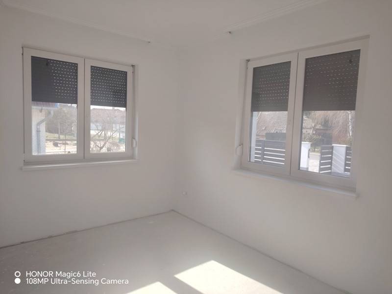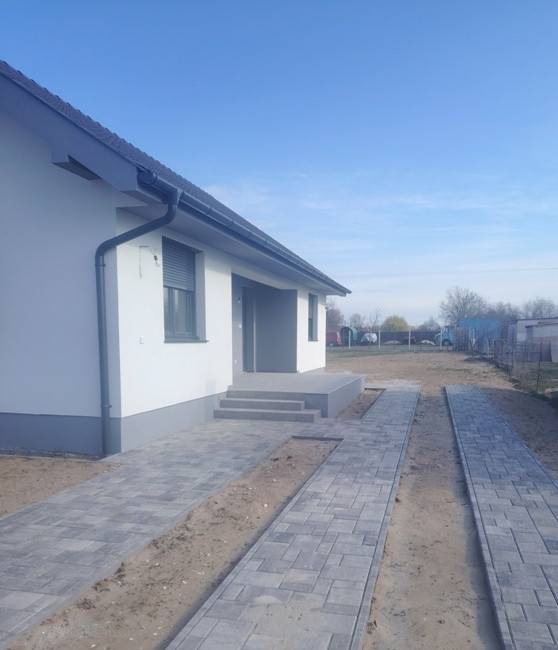 Dabason, rendezett környezetben értékesítésre kínálok egy 87 m2-es önálló családi házat. Az épület új, lakhatási engedéllyel rendelkezik. Beton alapon B30-as Leier téglából épült, a tető héjazata betoncserép. A külső falak 10 cm hungarocell szigetelést kaptak , a nyílászárók 3 rétegű műanyagok, melyek alumínium redőnyökkel ellátottak. A nappalinál elektromos redőny szolgálja a kényelmet, innen ki lehet menni a teraszra is. A fűtés Vaillant gázkazánnal, padlófűtéssel lett kialakítva, de 3 db hűtő-fűtő klíma is beszerelésre került. A szobák laminált padló burkolata 8000 Ft/ m2-ig választható egyéni ízlés szerint. A közművek közül villanny, fúrt kúttal és zárt emésztővel rendelkezik. Az utcában nem elérhető a vezetékes víz és a csatorna. A kapu elektromos működtetésre előkészítve. A házban riasztó rendszer helye ki lett építve. Megtekinthető a hét bármely napján: Antal Krisztina 06204004014