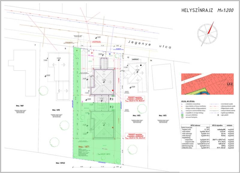Isaszeg csendes, családi házas részén, a Jegenye utcába 11. szám alatt kínálunk megvételre egy új építésű, igényesen kivitelezett ikerházat. A beruházóval már több sikeres értékesítésben működtem együtt, számos referenciával rendelkezik, munkáját megbízható minőség és korrekt kivitelezés jellemzi.Az 1173 m²-es telken épülő ingatlanok a jobb használhatóság érdekében hátrébb kerültek elhelyezésre, így kényelmesebb, élhetőbb kertkapcsolat alakul ki. Az utcafronti lakáshoz 465 m², míg a hátsó lakáshoz 708 m² kizárólagos használatú telekrész tartozik. A hátsó ingatlan ára 105.000.000.- Ft.Az első lakáshoz egy 4,8 méteres előterasz tartozik, amely igény szerint módosítható. Az ikerház felek kizárólag a fedett gépkocsibeállóknál érintkeznek, így a lakóterek szeparációja gyakorlatilag egy önálló családi ház érzetét nyújtja.Az épület 30 cm-es Porotherm téglából készül, fa födémmel. A hőszigetelés 15 cm homlokzati EPS-ből, 10 cm lépésálló rétegből és 30 cm födémszigetelésből áll. A 7 légkamrás, háromrétegű üvegezésű nyílászárók kívül barna, belül fehér színben készülnek, elektromos alumínium redőnyökkel és szúnyoghálóval szerelve.A fűtésről és hűtésről egy 9 kW-os split hőszivattyús rendszer gondoskodik, teljes padlófűtéssel és fan-coil hűtéssel, így az ingatlan fenntartása korszerű és energiahatékony megoldásokra épül.A belső kialakítás a vevő igényei szerint alakítható: a szobákban laminált padló választható 5.000 Ft/m² értékhatárig, míg a nappaliban, vizes helyiségekben és közlekedőkben 8.000 Ft/m²-ig választható hidegburkolat. A beltéri ajtók bruttó 70.000 Ft/db értékig kerülnek beépítésre. Magasabb minőségű anyagok felára egyedi egyeztetés alapján lehetséges.A villamos hálózat 1 fázisú, nappali 32A és 1 fázisú H tarifa 32 A terhelhetőségű, bővített konnektor- és világítási pontokkal, minden szobában TV- és internet kiállással. Az ingatlan riasztórendszer előkészítéssel készül, egy kezelőegységgel, több mozgás- és nyitásérzékelővel, valamint kaputelefonnal.A kert durva tereprendezéssel, térkövezett járdával és autóbeállóval készül. Az utcafronton zsalukő alappal és oszlopokkal, fa lécezéssel készül a kerítés, a gyalogos- és gépkocsi kapu mechanikus zárral és elektromos kiállással.Az ingatlan ideális választás mindazok számára, akik új építésű, korszerű műszaki tartalmú otthont keresnek, jól átgondolt elrendezéssel és megbízható kivitelezői háttérrel.INGYENES hitel tanácsadás, CSOK Plusz és Otthon Start ügyintézés!BANKFÜGGETLEN hitelcentrumunk az összes elérhető bank és hitelintézet ajánlatát versenyezteti az Ön kedvéért, ráadásul DÍJMENTESEN.- Egyedi, bankfiókban nem elérhető kamat- és díjkedvezmények- Hitelképesség vizsgálat- Idő, energia és pénz megtakarítás- Teljes hivatali ügyintézésAmennyiben hirdetésem felkeltette az érdeklődését vagy egyéb információra van szüksége hívjon bizalommal!