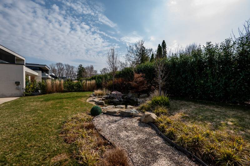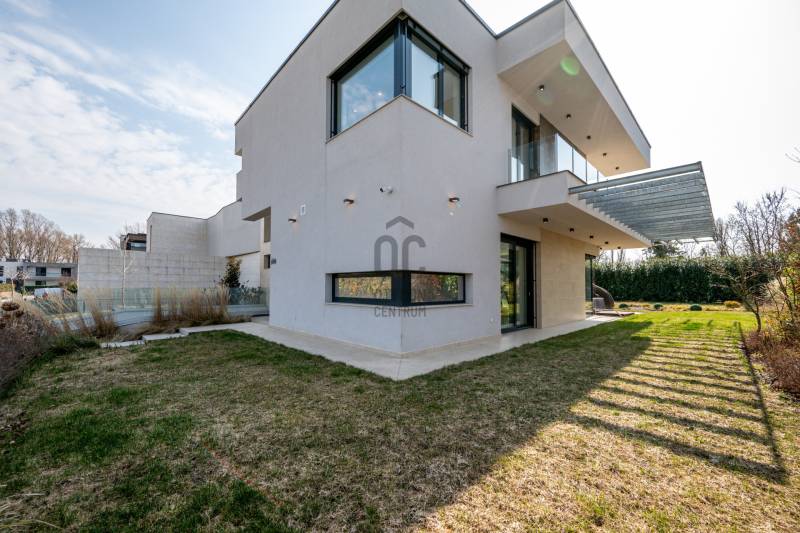Budapest III. kerületének egyik legexkluzívabb, Duna-part közeli lakóparkjában, a The Village lakóparkban kínálunk megvételre egy különleges, minden részletében prémium minőségben kialakított luxusvillát.A közel 27.664 m² parkosított zöldterületen elhelyezkedő, zárt és őrzött lakópark a természet közelségét és a modern városi élet kényelmét ötvözi. A Duna-part néhány lépésre található, a gondosan megtervezett kert, a japán zen hangulatú park és az elegáns lakókörnyezet nyugodt, privát életteret biztosít a lakók számára.A kb. 800 m²-es telken álló, háromszintes villa közel 300 m² lakóterülettel, 60 m² terasszal és 42 m² erkéllyel rendelkezik. A ház terei nagyvonalúan megtervezettek, világosak és elegánsak, a belső kialakítás során pedig minden részletnél a minőség és az időtálló design volt a meghatározó.A földszinten egy tágas, egy légterű nappali–étkező–konyha kapott helyet, amely közvetlen kapcsolatban áll a terasszal és a kerttel. A prémium kategóriás konyha felsőkategóriás AEG beépített gépekkel, borhűtővel, corian munkalappal és egyedi tervezésű konyhabútorral készült. A nappali eleganciáját egy modern biokandalló emeli ki.Az emeleten három kényelmes méretű hálószoba, gardrób és két fürdőszoba található, amelyekhez erkélyek kapcsolódnak. A földszinten külön szülői lakrész biztosítja az intim, nyugodt privát teret saját gardróbbal és fürdőszobával.A garázsszinten kétállásos, fűtött garázs kapott helyet elektromos autó töltési lehetőséggel, valamint tároló, mosókonyha, gépészeti helyiség és egy hobby szoba is kialakításra került.A villa műszaki felszereltsége a legkorszerűbb technológiát képviseli. A LOXONE okosotthon rendszernek köszönhetően a ház számos funkciója – például a fűtés-hűtés, világítás vagy egyéb rendszerek – akár telefonról is vezérelhető, így a mindennapi kényelem és energiahatékonyság maximálisan biztosított.A komfortot többek között az alábbi rendszerek szolgálják:- Mitsubishi Zubadan hőszivattyú- mennyezeti hűtés-fűtés és padlófűtés- fan-coil rendszer- teljes szellőztető rendszer- Schüco alumínium, háromrétegű üvegezésű nyílászárók- riasztó- és kamerarendszerA kertben egyedi tervezésű japán zen kert található kerti tóval, automata feltöltő és öntözőrendszerrel, valamint hangulatos kertvilágítással, amely különleges atmoszférát teremt.A lakópark lakói számára közösségi épület és nagyméretű medence is rendelkezésre áll, valamint wellness részleg kialakítása is folyamatban van. A terület biztonságáról 24 órás portaszolgálat és sorompós beléptetés gondoskodik.Ez az ingatlan ideális választás mindazok számára, akik a Duna közelségében, elegáns és biztonságos környezetben keresnek különleges otthont, ahol a természet nyugalma és a városi élet kényelme egyszerre van jelen.További információért és megtekintéssel kapcsolatban keressen bizalommal.