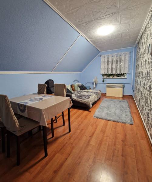 Eladó Erdőkertesen a Géza utcában egy 176 nm-es (nettó), 7 szobás, két generáció számára kialakított, földszinti, és zárt lépcsőházból nyíló emeleti lakásból álló átlagos állapotú családi ház. A földszint, mely a 80-as évek közepén készült el, előszobából, három szobából, fürdőszobából, konyha-étkezőből áll. E szinten a fűtést két darab parapet cirkó biztosítja, új radiátorokkal ellátott központi fűtésen keresztül, a külső nyílászárókat a pár éve műanyagra cserélték ahogyan a burkolatok egy részét is megújították. A tárolóként is funkcionáló lépcsőházból az emeleti szintre jutunk, mely 2012-ben épült, és egy előszobát, fürdőszobát, konyha-étkezőt, valamint három szobát tartalmaz. A fűtést itt gáz-konvektorok biztosítják, a külső nyílászárók pedig műanyagok. A ház 30-as téglából épült, stabil alapokon nyugszik, szigetelve nincs, a tető jó állapotú, födém szerkezete vasbeton, és egy 15 nm-es pincével is rendelkezik. A csaknem 1100 nm-es telken fedett és nyitott kocsibeállót, valamint ásott kutat egyaránt találunk.Ha felkeltettem érdeklődését, várom hívását!