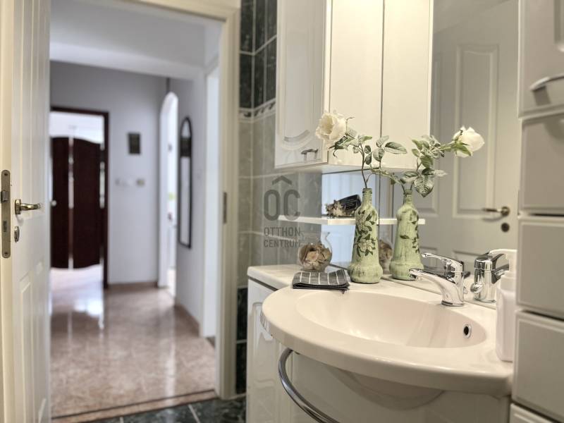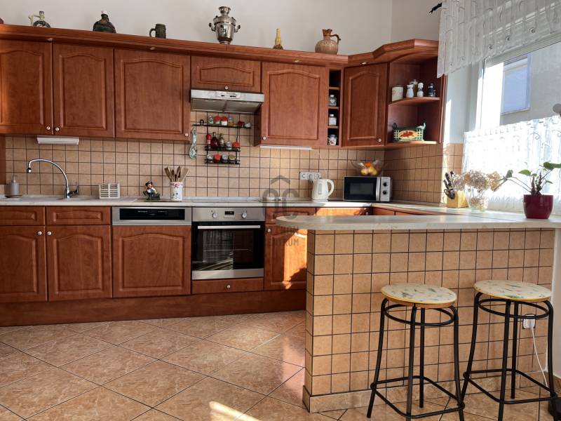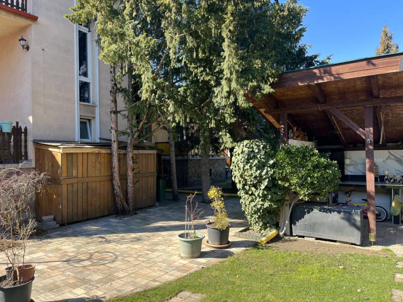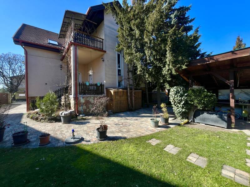 Összeköltözők, nagycsaládosok figyelem!Budapest XVIII. kerületének egyik legjobb részén, a csendes, családi házakkal övezett Bókaytelepen, a Szélmalom utcában kínálunk megvételre egy kiváló adottságokkal rendelkező, folyamatosan karbantartott, szigetelt, kétlakásos, háromszintes, téglaépítésű családi házat. Az utcafronttól előkert választja el.Két külön lakás került kialakításra, külön mérőórákkal.Nagy előny a ZÁRT LÉPCSŐHÁZ (10,8 m²) , így a tetőtéri lakás és a szuterén is az udvar érintése nélkül, belső lépcsőházon keresztül közelíthető meg.Az ingatlan részei: • földszinti lakás• emeleti ( tetőtéri) lakás• szuterén - szerelőaknával ellátott garázzsal• zárt lépcsőházA TELEK 539 m²-es.A KERT gyönyörűen gondozott, igazi családi élettér.Kiváló sütögetésre, családi rendezvényekre, pihenésre.• épített, fedett szaletli• kemence, sparhelt és kinti mosogató• fúrt kút• kiépített öntözőrendszer• térkövezett kocsibeálló akár 3 gépjármű számáraFÖLDSZINTI LAKÁS – 90,2 m² + 12 m² teraszKiváló állapotú, kellemes hangulatú, rendkívül napfényes lakás.Belmagasság: 3,12 mHelyiségek:• kényelmes méretű előszoba• nagyméretű amerikai konyhás nappali• 3 külön nyíló szoba• tágas fürdőszoba sarokkáddal és épített zuhannyal• külön mellékhelyiség• közlekedőA nappali és hálószoba klímával szerelt.A konyha különleges megoldással két irányból megközelíthető (közlekedő irányából lengőajtón keresztül illetve a nappali-étkező irányából is)Minőségi műanyag nyílászárók vannak redőnnyel és szúnyoghálóval ellátva.Fűtése: gázkazán és fatüzelésű kazánMeleg víz villanybojler által.A fürdőben törölközőszárítós radiátor és padlófűtés biztosítja a meleget.A lakáshoz 12 m²-es terasz tartozik.TETŐTÉRI LAKÁS – nettó 76,4 m² (bruttó 95,3 m²) + 12 m² fedett terasz2005-ben utólagos tetőtér-beépítés által épült.A lakás jó adottságú, kevés ráfordítással igazán különleges otthonná alakítható.Helyiségek:• nagyméretű előszoba (beépített szekrény számára alkalmas térrel)• amerikai konyhás nappali• 3 külön nyíló szoba ( ferde tető kialakítással)• külön WC• fürdőszoba• közlekedőAz amerikai konyhás nappali különleges, impozáns tér látszó gerendákkal, a tetőgerincnél 4,5 m-es belmagassággal.A többi helyiségben a belmagasság 2,65 m.A ferde tető alatti, 1,90 méternél alacsonyabb terek is jól kihasználhatókA nappali klímával szerelt.Fűtése: gázcirkóSZUTERÉN - alagsor ablakokkal és fűtéssel ellátva, 100 m²-en.Részei:• kazánház• konditerem• konyha• spájz• mellékhelyiség• SZERELŐAKNÁVAL ELLÁTOTT GARÁZS (36,95 m²), a szuterén szintenIdeális választás:• két generáció összeköltözésére• nagycsaládosoknak• vállalkozás + lakhatás kombinációjára• befektetésre, bérbeadásraAz ingatlan 1/1 tulajdonjogú, jogilag teljesen önálló. Ikerház, de telekmegosztással saját helyrajzi számot kapott.Nyugodt, családbarát környék, kiváló infrastruktúra, zöldövezet, mégis jó közlekedés, boltok, piac. Iskola, óvoda a közelben.A közelben található a Bókay-kert, amely sportolási, kikapcsolódási és családi programlehetőségek széles választékát kínálja.Ha egy valóban jól kihasználható, értékálló, kétgenerációs otthont keres a XVIII. kerület egyik legjobb részén, ezt az ingatlant érdemes megnéznie!