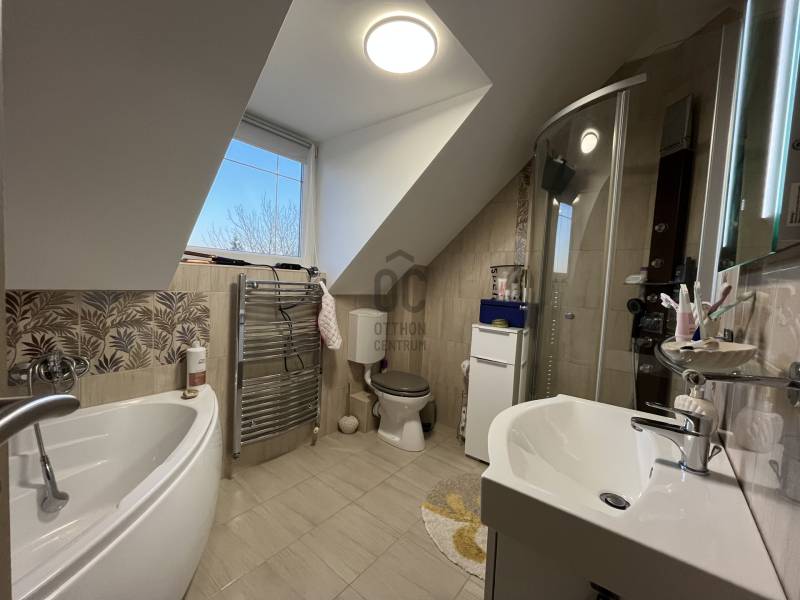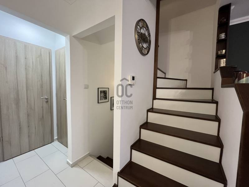Debrecen, Kassai úti Campus mellett háromszintes sorház eladó – saját térkövezett kerttel, garázzsal!!CSAK NÁLUNK!!Debrecen kedvelt kertvárosi övezetében, a Kassai úti Campus közvetlen közelében, csendes, rendezett utcában kínálom megvételre ezt a különleges karakterekkel rendelkező 116 m2-es, napfényes, háromszintes, kiváló állapotú sorházat.Az ingatlan 2007-ben épült, 108 m2-es térkövezett elő és hátsó kerttel, garázzsal, valamint külön bejáratú alsó szinttel rendelkezik, amely irodának, rendelőnek vagy üzleti célra is ideális lehet.A földszinten található egy nagy méretű mosókonyha-háztartási helyiséggel, tágas-kényelmes előszoba, wc, illetve innen jutunk fel az emeleti lakótérbe.A kényelmes, burkolt garázs, melyet elektromos garázskapu működtet, kiváló helyet biztosít egy gépkocsinak illetve a családi bicikliknek és egyéb tárgyaknak.Az ingatlan központi eleme a 33 m2-es, letisztult amerikai konyhás nappali-étkező, ahol az ápolt fa borítású lépcső, eleganciát sugároz.Kiváló elrendezésnek köszönhetően a ház benapozott, világos, jól bútorozható.A hátsó kert térkövezett, intim, zárt, keleti elhelyezkedésű, kiváló helyet biztosít a reggeli kávézáshoz vagy az esti sütögetéshez.A tetőtérben eredetileg 3 kisebb szoba volt tervezve, viszont a tulajdonosok kettőt egybe nyitottak, így itt kettő szoba található.Mindkét szinten található fürdőszoba,a földszinten külön wc.Főbb előnyök:Kiemelt elhelyezkedés: Campus 2 perc sétára, belváros 6 perc autóvalSaját, térkövezett kert (108 m²), garázs + 2 parkolóhelyKülön bejáratú alsó szint: ideális üzleti tevékenységhez vagy irodánakCsendes, zöld környezet, 4 lakásos épületegyüttes második tagjaként (előnye, hogy körbefűtött, kedvező rezsiköltség)Műszaki paraméterek:30 cm-es tégla falazat + 5 cm hőszigetelés, szigetelt padlástérMűanyag hőszigetelt nyílászárókKorszerű gázkazán + 2 db klíma (lakószintenként)Külön mosdó mindhárom szinten, 2 fürdőszoba az emeleten és a tetőtérben is!Az ingatlan teher-, per- és hitelmentes!Kinek ajánljuk?Családoknak, akik kényelmes otthont keresnekBefektetőknek, akik a Campus közelsége miatt kiváló kiadhatósági potenciált keresnek A környék közlekedése kiváló, üzletek, boltok a közelben, a város bármely pontja akár gépkocsival, akár tömegközlekedéssel pár perc alatt elérhető!Amennyiben további kérdése van állok rendelkezésére, akár hétvégén is!