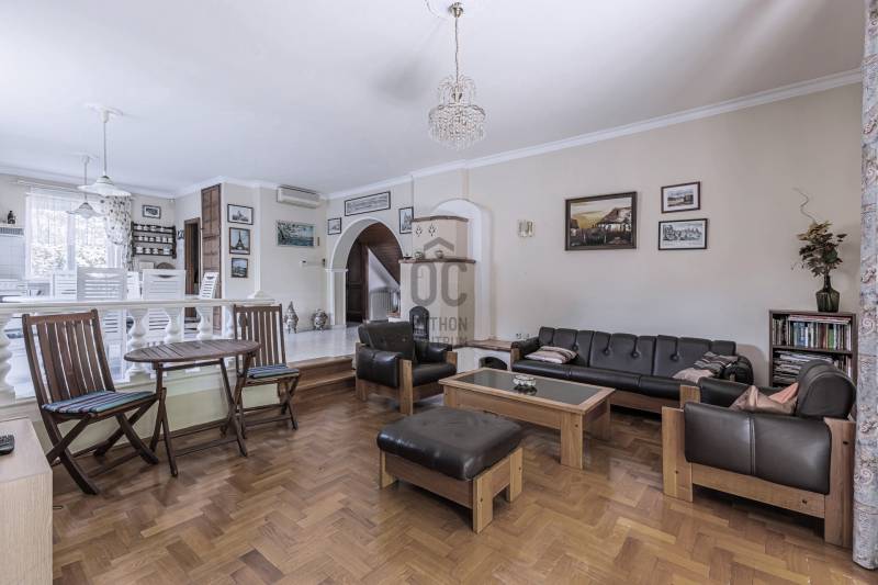 Budakalász központjához közel kínálunk megvételre egy bruttó 340 nm-es, kétszintes, téglaépítésű, cirkófűtéses, 8 szobás, jó állapotban lévő családi házat 1047 nm-es telken.Az ingatlan kiváló választás lehet nagyobb családoknak, több generáció együttélésére, de befektetési célra is remek lehetőséget kínál.Az ingatlan elrendezéseAz épület mindkét lakószintje átgondolt, praktikus elrendezésű. Szintenként megtalálható:-tágas nappali-három külön nyíló szoba-konyha-fürdőszoba-külön WCA ház jelenlegi kialakítása szerint két külön bejárattal rendelkező, kétgenerációs ingatlan, így többféle módon hasznosítható:-Ideális lehet több generáció együttélésére,alkalmas bérbeadásra vagy befektetésnek,a felső szint akár iroda vagy vállalkozás számára is használható-Kisebb átalakítással a két szint egybenyitható, így egy nagy, összefüggő lakótér is kialakítható.A teljes lakóterület 340 m², amely magában foglal:-6 hálószobát,2 nappalit,2 konyhát,3 fürdőszobát,3 különálló WC-tSzuterén és egyéb helyiségek:-A lakószintek alatt egy 72 m²-es szuterénszint található, ahol az alábbi helyiségek kaptak helyet:Kétállásos garázs,szauna,mosókonyha,fürdőszoba,gépészeti helyiségAz épület állapota:Az ingatlan 1995-ben épült, azóta folyamatosan karbantartott. Jelenleg nem lakott, ezért kisebb javítások és egy tisztasági festés után rövid időn belül költözhető.Kert és környezet:A földszinti lakrészhez egy 14 m²-es, napfényes terasz kapcsolódik, amely közvetlen átjárást biztosít a kertbe.A tágas telken ősfák, dísztó és kiépített öntözőrendszer teszi még hangulatosabbá a környezetet. A telek végében a Barát-patak csordogál, amelyhez a kert hátsó kapuján keresztül közvetlen kijárás biztosított.Elhelyezkedés:Az ingatlan elhelyezkedése rendkívül kedvező, hiszen 10 perces sétával elérhető:Iskola,orvosi rendelő,posta,bevásárlási lehetőségek,HÉV-megállóJogi háttér:Az ingatlan rendezett tulajdonviszonyokkal rendelkezik, hitel felvételére alkalmas, valamint különböző állami támogatások igénybevételére is megfelelő. Igény esetén díjmentes, bankfüggetlen hitelügyintézésben is segítünk.Amennyiben az ingatlan felkeltette érdeklődését, vagy szeretné személyesen is megtekinteni, keressen bizalommal!