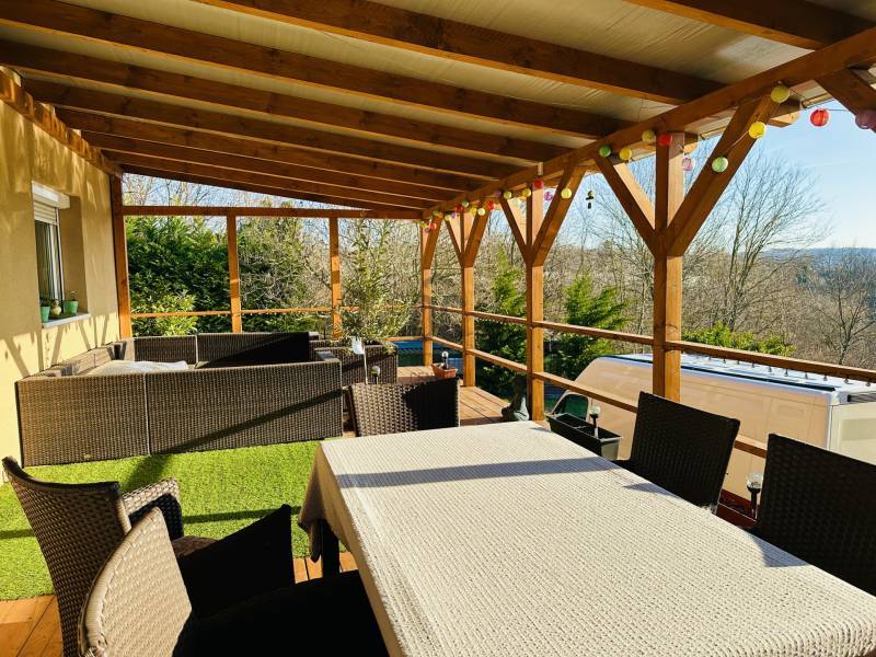 Eladó Mogyoród csendes, igényes környezetében egy kiváló elosztású, 3 szintes, 129 m²-es családi ház, amely 1208 m²-es telken helyezkedik el. Az ingatlan ideális választás lehet családok számára, akik nyugodt, zöld környezetben szeretnének élni, mégis Budapest közelében.A ház tágas, világos terekkel rendelkezik, a nappaliból pedig egy hangulatos, panorámás terasz nyílik, amely tökéletes helyszíne lehet pihenésnek vagy baráti, családi összejöveteleknek.Az ingatlan elosztásaA 3 szintes ház praktikus kialakítású:1. Alsó szint-45 m²-es garázs-tárolásra is alkalmas kiszolgáló terek2. Földszint-tágas nappali teraszkapcsolattal- 2 db külön nyíló szobák-fürdőszoba-előszoba-WC-tároló3. Emelet-2 db tágas szoba-fürdőszoba (gépészet kialakítva, burkolásra vár)-Közlekedő, melyből egy hangulatos fedett erkélyre jutunk. Összesen:nappali + 4 szoba2 fürdőszobaKomfort és műszaki tartalom:-Vegyes-tüzelésű kazán puffer tartállyal-radiátoros fűtés-padlófűtés a nappaliban, előtérben és az alsó szinti fürdőben-3 db Wifis klíma (2 az emeleten, 1 a földszinten)- minden nyílászárón alumínium redőny Telek és extrák:-1208 m²-es telek-elektromos autó töltő kiépítve-ásott kút-fedett autóbeálló-elektromos kovácsoltvas kapu-rendezett, kellemes környezet Lokáció:Mogyoród egyre népszerűbb település Budapest közvetlen közelében, amely kiváló választás azoknak, akik a város közelsége mellett nyugodt, zöld környezetben szeretnének élni. A közelben megtalálhatók iskolák, óvodák, boltok, valamint a közlekedés is kedvező.M3-as autópálya pár percnyire. Ha felkeltette érdeklődését keressen bizalommal a hét bármely napján.