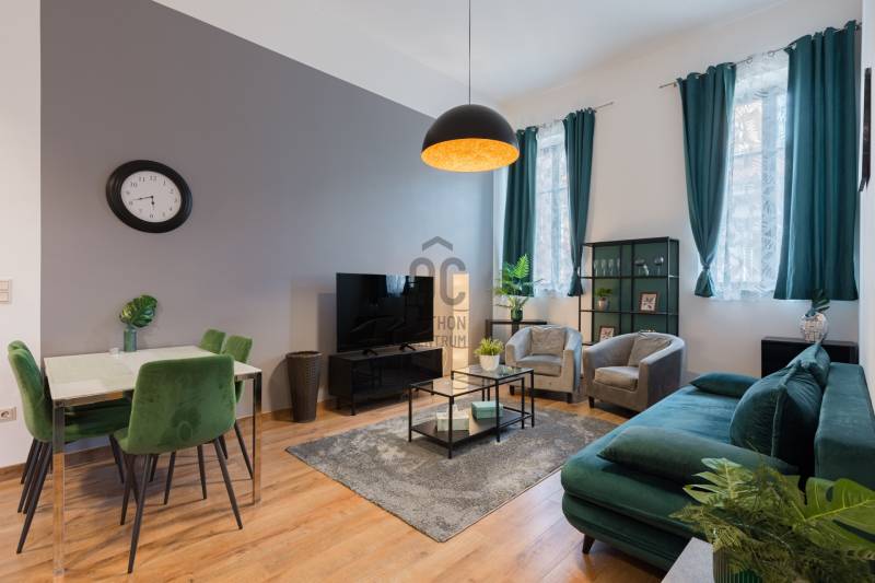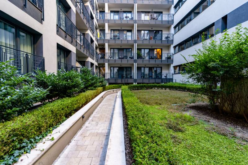 Eladásra kínálunk Budapest VI. kerületében, a Király utcában található modern, 2020-ban átadott prémium lakóépületben egy kiváló állapotú, 3. emeleti lakást. Az ingatlan déli fekvésű, utcára néző, lift segítségével könnyen megközelíthető, valamint akadálymentes kialakítású és légkondicionált. A ház korszerű, központi fűtési rendszerrel működik egyedi mérőkkel.A lakás belső tereit elegáns és modern stílus jellemzi. A gondosan kialakított alaprajz és a kedvező tájolás miatt a lakótér világos, kellemes atmoszférát biztosít. Az ingatlan jelenlegi formájában azonnal költözhető vagy befektetésként is könnyen hasznosítható.A lakás egy hét szintes, magas minőségben kivitelezett társasházban található, ahol a lakók biztonságáról folyamatos portaszolgálat gondoskodik. Az épület egyik legnagyobb különlegessége a tetőszinten kialakított kültéri medence és napozóterasz, ahonnan lenyűgöző kilátás nyílik a városra.Érdemes kiemelni, hogy ebben a házban ritkán kerülnek lakások értékesítésre, így az ajánlat különösen értékes lehet mind befektetők, mind saját otthont keresők számára.Az ingatlan fenntartási költsége kedvező: gáz nincs az épületben, a hűtést és fűtést fan-coil rendszer biztosítja. A megfelelő hőszigetelés és az A+ energiaosztály hosszú távon is alacsony rezsiköltséget eredményez.Igény esetén a lakás meglévő hosszú távú bérlővel és üzemeltetéssel együtt is átvehető, ami stabil, rendszeres bevételt jelenthet az új tulajdonos számára.A környék infrastruktúrája kiváló: a Gozsdu Udvar néhány perc sétával elérhető, a közelben üzletek, éttermek, szórakozóhelyek, gyógyszertár és számos szolgáltatás található. A pezsgő belvárosi környezet és a kiváló kiadhatóság miatt az ingatlan hosszú távon is értékálló befektetés.Az ajánlat elsősorban azoknak lehet ideális, akik stabil hozamot kínáló belvárosi ingatlant keresnek, ugyanakkor egy magas színvonalú saját otthon lehetőségét sem szeretnék kizárni.