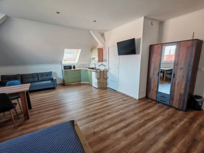 Balatonszárszó szívében eladó egy tágas35m²-es, amerikai konyhás nappalis lakás, teljes körűen felújított épület első emeletén. Ideális választás nyaralónak vagy befektetésnek egyaránt. Azonnal birtokba vehető.A lakás modern, világos, amerikai konyhás nappalival, nyitott hálórésszel rendelkezik. Teljesen berendezett, minden bútor és tároló rendelkezésre áll.Főbb jellemzők• Alapterület: 35m² • amerikai konyhás nappali, nyitott hálórész elrendezéssel• elektromos infra fűtés / hűtő-fűtő klímaberendezés• saját víz- és villanyóra• tehermentes, azonnal költözhető• beépített bútorok és tárolók a hely maximális kihasználásáraElőnyök• közös használatú kert pihenésre és szabadidőre• parkolóhely minden lakás számára• rendezett, barátságos környezetben • kiváló környék, közel minden szolgáltatáshoz:élelmiszerbolt, egészségügyi és szépségápolási szolgáltatások éttermek, kávézók.• Balaton-part mindössze 10 perc sétára• teljes körűen felújított, újszerű épület• közös területek: zöld terület, játszótér✔ Központi mégis nyugodt környék✔ nyaralónak vagy befektetésnek ideális✔ stílus és kényelem egybenEz a lakás nemcsak otthon vagy nyaraló hanem kiváló befektetési lehetőség is, hiszen a Balaton körüli ingatlanpiac folyamatosan növekszik, és a jövőbeli értéknövekedés garantált. Bármilyen kérdése van, szívesen állok rendelkezésére. Élj a lehetőséggel, és találj rá álmaid lakására Balatonszárszón!Ez az ingatlan a \"Felező csomag\" megbízási portfólióhoz tartozik. Részletek az Otthon Centrum weboldalán.