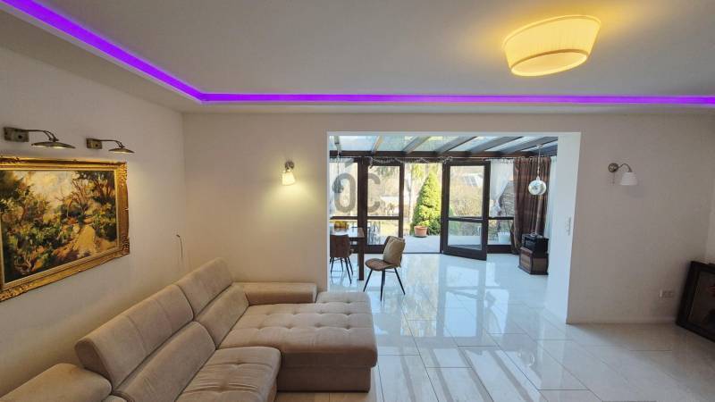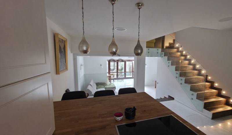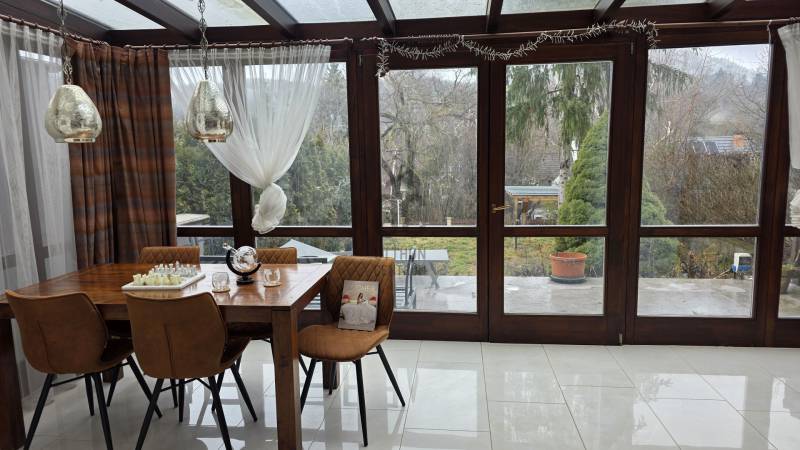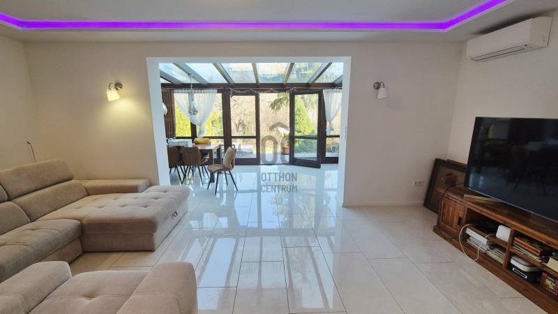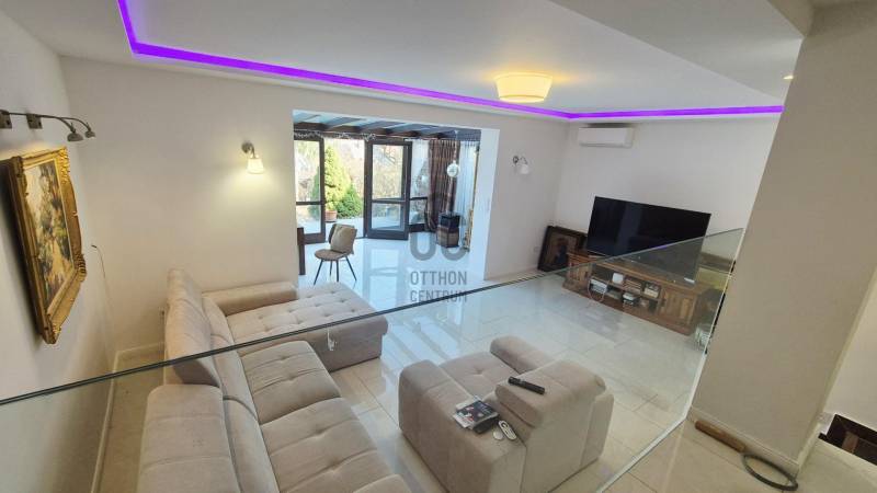 Budapest II/A kerületének egyik legszebb, nyugodt részén, Pesthidegkút ófalujában kínáljuk megvételre ezt a kb. 250 m²-es, háromszintes, kertkapcsolatos sorházi lakást, amely néhány éve teljeskörű, prémium minőségű felújításon esett át, így új tulajdonosát azonnal költözhető állapotban várja.Az ingatlan világos, tágas terekkel és körbenapozott elrendezéssel rendelkezik. A földszinten kapott helyet a napfényes nappali, a kertre néző hangulatos télikert, valamint az egyedi tervezésű, konyhaszigetes, prémium konyhabútorral felszerelt konyha. Ezen a szinten található továbbá egy vendégmosdó, valamint egy vendég- vagy dolgozószobaként is használható helyiség.A felsőbb szinteken több kertre néző hálószoba, több fürdőszoba, gardróbok és erkélyek biztosítják a család minden tagja számára a kényelmes életteret.Az alsó szinten garázs, mosókonyha, tároló és egy jelenleg konditeremként használt helyiség kapott helyet, így a ház a mindennapi praktikum szempontjából is jól átgondolt.A kb. 380 m²-es, gondozott kert igazi privát pihenőtér: öntözőrendszer, pergola, kerti bútorok, kültéri főzőpult és bográcsozási lehetőség teszi ideálissá családi és baráti összejövetelekhez.- A ház korszerű gépészettel rendelkezik: kondenzációs kazán, radiátoros és padlófűtés, valamint inverteres hűtő-fűtő klíma biztosítja az egész éves komfortot.- Energetikai besorolása: B – kedvező fenntartási költségek mellett üzemeltethető ingatlan.- Az ingatlan friss villamos biztonsági felülvizsgálattal rendelkezik, amely alapján a rendszer megfelel az előírásoknak – így műszaki szempontból is biztonságos választás.A környék csendes, zöldövezeti, mégis kiváló infrastruktúrával rendelkezik. A közelben megtalálható a Széphalom Bevásárlóközpont, nemzetközi iskolák, a Gyarmati Dezső Uszoda, valamint számos sport- és kirándulási lehetőség. A tömegközlekedés szintén könnyen elérhető, így a város többi része is gyorsan megközelíthető.Ez az ingatlan ideális választás azok számára, akik a város közelségét szeretnék ötvözni a természet nyugalmával, és egy igényesen felújított, tágas családi otthont keresnek.Várom a hívását! Amennyiben nem venném fel, ígérem amint lehetőségem adódik visszahívom.