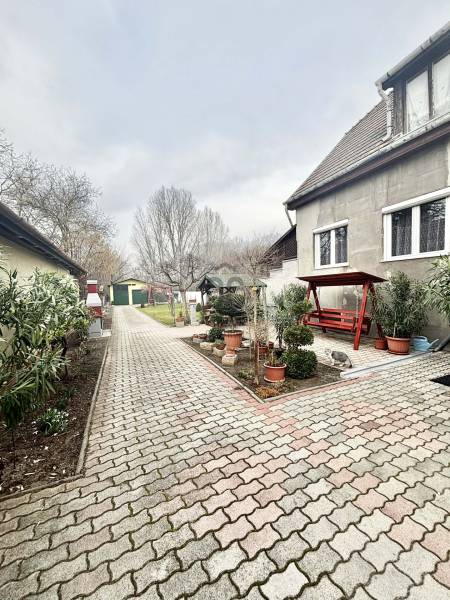 Központi elhelyezkedéssel, iskola, vasútállomás és üzletek közelében eladó egy 275 m²-es, 3 szintes, 6 szobás + nappalis, két generáció számára is ideális ikerházfél, 742 m²-es saját telekkel.Az ingatlan két konyhával, 2 beállásos garázzsal, számos tárolási lehetőséggel rendelkezik. A ház szigetelt, fa thermo nyílászárókkal, 3 klímával, pár éves kondenzációs gázkazánnal, víztisztító rendszerrel és elektromos kovácsoltvas kerítéssel felszerelt.A kertben a gyerekhinta, szaletli és a sütögető is a vételár részét képezi, valamint az ingatlanban lévő bútorok egy része is. Ideális választás nagycsaládosoknak, több generáció együttélésére, vagy akár otthoni vállalkozás kialakítására is.