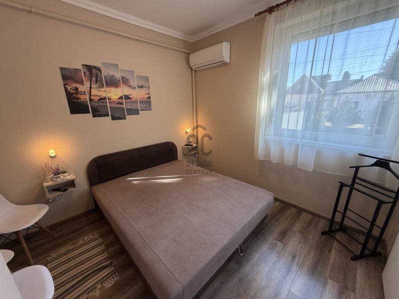 Egy modern, világos és kiváló állapotú ingatlant keresel Hajdúszoboszlón? Akkor ez a nyaraló a Fürdőnegyedben tökéletes választás számodra. Ez az ingatlan 50 négyzetméteren kínálja a kényelmet és a stílust, amit megérdemelsz. A kétszobás elrendezés lehetővé teszi, hogy barátokkal vagy családdal élvezd a közös pillanatokat, a tágas nappali pedig a tökéletes helyszín a lazításra vagy a közös programok lebonyolítására. A két különálló hálószobához saját fürdőszobák tartoznak, ennek köszönhetően az ingatlan ideális választás lehet vendégtartásra is.A klímás fűtés és hűtés és ház szigetelése garantálja a kellemes hőmérsékletet bármely évszakban. A biztonsági ajtó, műanyag nyílászárók és a kültéri kamera pedig a nyugalmat és a biztonságot szolgálják, hogy mindig otthon érezhesd magad. A 250 négyzetméteres telek egy rendezett kerttel rendelkezik, ahol a szabadban eltöltött idő igazi élménnyé válik. A kerti tároló biztosítja, hogy a kerti eszközöket rendezetten tárold, a fedett gépkocsibeálló és a térburkolt udvari beálló lehetővé teszi a biztonságos parkolást.Ráadásul, ha kisállattal költöznél, ez az ingatlan tökéletes választás, hiszen a csendes környék és a közelben lévő szabadidőpark ideális a sétákhoz és a játékhoz. A Fürdőnegyed felkapott környékén való elhelyezkedés a nyugodt életstílust biztosítja.Ez az ingatlan nem csupán egy lakóhely, hanem egy lehetőség, hogy egy modern és kényelmes életet élj Hajdúszoboszlón.A lakás tehermentes, így gyorsan és egyszerűen birtokba vehető.Ne habozz, ha kérdéseid vannak, vagy szeretnéd megtekinteni ezt az ingatlant, bátran keress meg! Bizalommal állok rendelkezésedre, hogy segítségedre legyek az új otthonod megtalálásában!Amennyiben vásárláshoz hitelre is szükséged van független hitel tanácsadónk ingyenesen tud segítséget nyújtani a legjobb konstrukciók kiválasztásában és a folyamat lebonyolításában.Irodánk kereső ügyfeleinknek teljes körű szolgáltatást nyújt, szakszerű tanácsadással, energetikai tanúsítvány elkészítésével, hitelügyintézéssel és profi ügyvédi segítséggel.AZ INGATLAN A FELEZŐ PORTFÓLIÓ RÉSZÉT KÉPEZI!A HIRDETÉSI ADATOK ÉS AZ ALAPRAJZ TÁJÉKOZTATÓ JELLEGŰEK !Ez az ingatlan a \"Felező csomag\" megbízási portfólióhoz tartozik. Részletek az Otthon Centrum weboldalán.