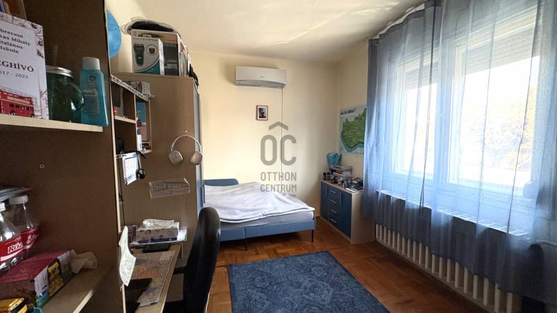 Hajdúböszörmény, Belvárosában eladó, 140 nm-es lakóterű, felújított családi ház 853 nm-es telken. A földszinten egy hallból nyílik a tágas nappali-étkező, a konyha-étkező, a hálószoba, a külön WC-fürdőszoba és a kamra.Az emeleti részen egy dolgozó-szabadidős helyiségből nyílik egy hálószoba fürdőszoba kapcsolattal és a gyerekszoba.Jellemzők:--egyedi tervezésű konyhabútor beépített gépekkel--hőszigetelt üvegezésű fa nyílászárók, új redőnyökkel--új fürdőszoba burkolatok, új szaniterek-- új klímák, új villanybojler, riasztó rendszer--új homlokzat, új kerítés, új tetőszerkezet--tölgyfa lépcső és gardrób szekrények, keményfa parketta--ha kevés a szoba, a nappali kétfelé osztható--100 nm-es raktározásra alkalmas melléképület, felújítva kétgenerációs házzá alakítható-- konyhából nyíló 25 nm-es terasz a szabadidő eltöltéséhez, az udvaron árnyas diófa, fúrt kút--35 nm-es szuterén jellegű pinceA belváros rövid sétával elérhető, bevásárlási lehetőség, óvoda a közelben van. Debrecen akár autópályán akár a 35-ös úton kb 10-15 perc alatt megközelíthető.Ajánlom ezt a jó állapotú, felújított ingatlant családok számára, de a 100 nm-es melléképülettel 2 generációssá tehető, vagy vállalkozásra is kiváló.Egyéb információért és a megtekintéshez hívjon bizalommal.