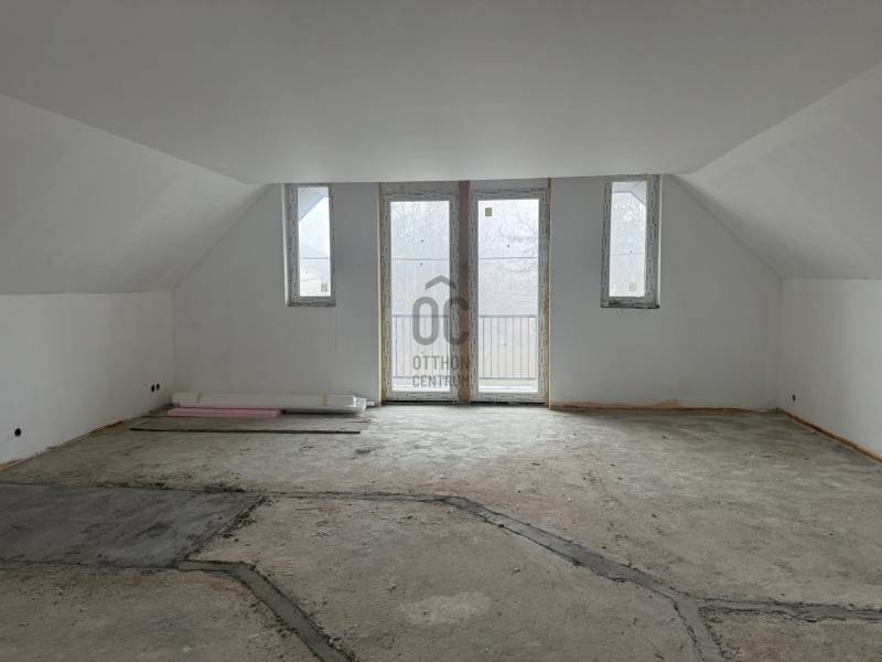 Ikerház Rákoscsabán, panelàr alatt !Álmai otthona Rákoscsaba-Újtelepen – 3 szint, 4 szoba, tágas élettér!Budapest XVII. kerületének csendes, kertvárosi részén, Rákoscsaba-Újtelepen eladó egy 2006-ban épült családi ikerház utcafronti lakása, gépkocsi beállási lehetőséggel.Az ingatlan háromszintes, szintenként kb. 55 m², így összesen ~165 m² hasznos alapterülettel rendelkezik. A szintek belső, beton lépcsővel kapcsolódnak egymáshoz.Tervezett elrendezés (igény szerint alakítható)Magasföldszint:Amerikai konyhás nappaliMellékhelyiségTetőtér:2 vagy akár 3 külön nyíló hálószobaFürdőszoba WC-velSzuterén szint:Szabadon alakítható az Ön igénye szerint:tárolóként meghagyhatóvagykialakítható 2 szobás lakószintként (dolgozó, háló, hobbi- vagy fitneszterem)Ennek kivitelezését az eladó +5 millió Ft-ért vállalja.Jelenlegi készültségi állapot (~75%)3 rétegű, új műanyag nyílászárókBeton lépcső a szintek közöttHangszigetelt fal a két lakás közöttÚj villanyóraVadonatúj 10 cm Dryvit hőszigetelésA befejezést a vevő saját ízlés szerint valósíthatja meg,vagy az eladó vállalja a kulcsrakész befejezést +20 millió Ft-ért, pontos műszaki tartalom alapján.Kulcsrakész műszaki tartalomTeljesen új közműkiépítés telekhatártól (víz, villany, csatorna)Bosch 8 kW hőszivattyú lakásonkénti hőmennyiségmérővelPadlófűtésWellis 80 literes villanybojlerBurkolatok és szaniterek beépítéseVillanyvezetékek, kapcsolókÚj beltéri ajtókBurkolt teraszokUtcai kerítésTV csövezés minden szobábanTelefon csövezés a nappalibanRiasztó előkészítés4–5 db fan-coil (nappali + hálók hűtésére)Környezet és elhelyezkedésCsendes, kertvárosi övezetGépkocsi beállási lehetőségBKK buszmegálló a közelbenBevásárlási lehetőségek pár percen belül⚖️ Tulajdoni viszonyAz ingatlan osztatlan közös tulajdon, a vevő az adott lakásnak megfelelő tulajdoni hányadot vásárolja meg.A használati megosztást ügyvéd által készített, minden jogutódra kiterjedő megállapodás szabályozza.Kinek ajánljuk?Ideális választás azoknak,akik saját ízlésük szerint szeretnék befejezni új otthonukat,vagy kedvező áron, panelár alatt keresnek családi méretű ingatlant Budapesen.Részletekért hívjon bizalommal, akár még ma!Ez az ingatlan a \"Felező csomag\" megbízási portfólióhoz tartozik. Részletek az Otthon Centrum weboldalán.