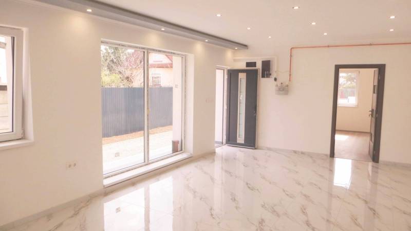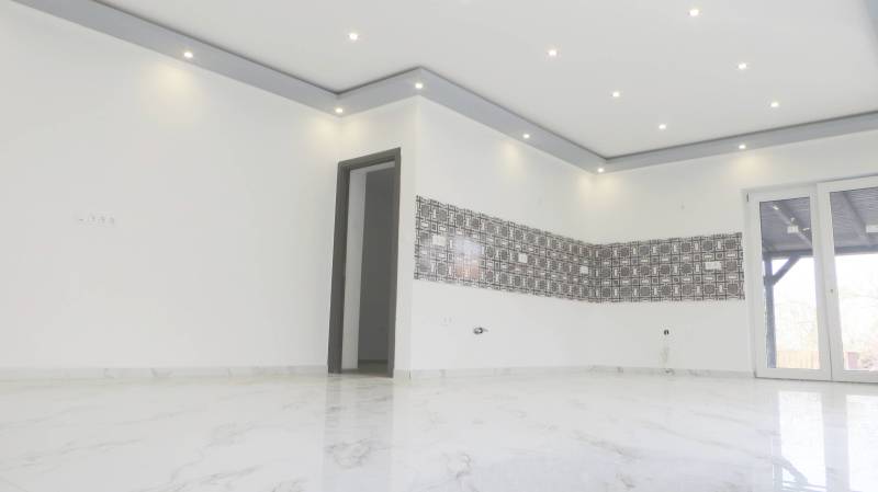 Gyula Nagyrománváros részén kínálom eladásra ezt a teljeskörűen felújított, előkertes családi házat, amely nettó 91 m²-es, 3+1 félszobával rendelkezik. A nappalival egybenyitott amerikai konyhás tér tágas, világos és harmonikusan összekapcsolja a közösségi helyiségeket a 30m²-es újonnan kialakított fedett terasszal, míg a három különálló hálószoba kényelmes és praktikus elrendezést ad akár családok számára is.Az ingatlan eredeti szerkezete vasbeton alapra és B30-as blokk téglafalazatra épült, amely a felújítás során komoly műszaki tartalommal egészült ki. A teljes aljzatcsere 10 cm lépésálló szigeteléssel és új teknőszigeteléssel készült, a homlokzat 15 cm szigetelést, a födém pedig 25 cm hőszigetelést kapott, ami a ház energiahatékonyságát jelentősen javítja. A fűtésről és a melegvízellátásról egy vadonatúj, 24 kW-os Ariston gázcirkó gondoskodik, a hőleadás modern padlófűtésen keresztül történik, ami egyenletes és komfortos hőérzetet biztosít minden helyiségben.A felújítás során nemcsak a gépészet – villany, víz, szennyvíz – lett teljesen új, hanem a ház szerkezeti elemei is megújultak: új vasalt betonkoszorú készült, teljes tetőszerkezetcsere történt antracit színű betoncseréppel, valamint minden külső és belső nyílászáró modern, energiakímélő kivitelre lett cserélve. A belső terek új hideg- és melegburkolatot kaptak. A jövőbeni fejlesztéseket segíti, hogy a napelemrendszer kiépítéséhez szükséges csövezés és előkészítés már megtörtént, akárcsak a „H” tarifa bekötésének előkészítése, így a következő tulajdonos minimális ráfordítással bővítheti tovább az ingatlant.A 30 m²-es fedett terasz ideális helyszíne lehet családi és baráti összejöveteleknek, miközben a 100%-ban közművesített, 570 m²-es telek megfelelő méretet biztosít a kert kialakításához vagy kényelmes udvari élethez. A telken egy garázs is található, az utcafront pedig új, esztétikus kerítést és kaput kapott, ami tovább erősíti az ingatlan rendezett, igényes megjelenését.Ez a ház azok számára jelent kivételes lehetőséget, akik egy teljesen felújított, azonnal költözhető, modern műszaki tartalommal rendelkező otthont keresnek Gyula egyik kedvelt városrészében.