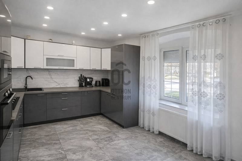 Lovasberény központjában eladó egy 882 m²-es telken álló, nettó 98 m² alapterületű, nappali + 3 hálószobás, duplakomfortos családi ház, amely ideális választás lehet nagycsaládosok számára, akik nyugodt, természetközeli környezetben szeretnének élni, mégis jó infrastruktúrával.Az ingatlan egyik legnagyobb értéke a családbarát térkialakítás: • a tágas nappali + 3 külön hálószoba lehetőséget ad arra, hogy minden családtagnak saját tere legyen, • a közel 40 m²-es fedett terasz tökéletes helyszín lehet családi ebédekhez, baráti grillezésekhez vagy gyerekzsúrokhoz, • a nagy kert pedig kiváló lehetőséget kínál játszótér, konyhakert vagy akár egy kis focipálya kialakítására.A ház 2023-ban teljeskörű felújításon esett át, melynek során új burkolatok, új szaniterek, új beltéri ajtók, új konyhabútor került beépítésre, valamint egy hangulatos, tégla építésű kandalló is helyet kapott a nappaliban – tökéletes a meghitt családi estékhez.A műanyag nyílászárók és a rézvezetékes, bővített villanyhálózat (25A + 16A éjszakai) már a jelenlegi tulajdonos vásárlásakor adott volt.A ház jelenleg is lakható, azonban néhány kisebb esztétikai részlet – például parkettaszegélyek, ajtók körüli szegélyezések vagy csillárok – még beépítésre várnak, így az új tulajdonos saját ízlésére szabhatja az utolsó simításokat.A vegyes falazatú (vályog–kő) épület masszív, a főfalak vastagsága kb. 60 cm, ami természetes hőérzetet biztosít. A tetőszerkezet jó állapotú, egy új héjalással még egységesebb megjelenést kaphat az épület.A házhoz több praktikus mellékhelyiség is tartozik, amelyek egy család mindennapjait jelentősen megkönnyítik: • tégla építésű pince – igazi ritkaság, akár bortárolásra is kiváló • 18 m²-es kazánház és tároló • padlásmegközelítés a kazánházból • külön kerti tároló szerszámoknak, fűnyírónakA kert gondozott, az előkert virágos, a hátsó részen pedig konyhakert vagy gyerekeknek kialakított játszóterület is könnyedén megvalósítható. Elhelyezkedése kifejezetten családbarát: • buszmegálló mindössze 20 méterre • Coop ABC 150 méterre • óvoda, iskola, orvosi ellátás, posta a településen elérhetőLovasberény a Velencei-hegység lábánál, természetközeli, nyugodt környezetben található, mégis kiválóan megközelíthető: • Székesfehérvár kb. 15–20 perc autóval • Budapest kb. 45–60 percA település csendes, barátságos légköre, a közeli kirándulóhelyek, valamint a Velencei-tó közelsége különösen vonzóvá teszik a családosok számára.Ez az ingatlan ideális választás lehet azoknak a nagycsaládosoknak, akik egy tágas, szerethető otthont keresnek kerttel, terasszal és valódi vidéki életérzéssel – mégis jó elérhetőséggel a városok felé.Ez az ingatlan a \"Felező csomag\" megbízási portfólióhoz tartozik. Részletek az Otthon Centrum weboldalán.