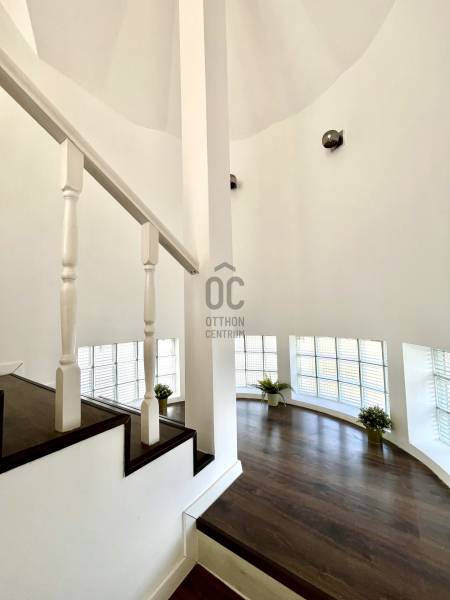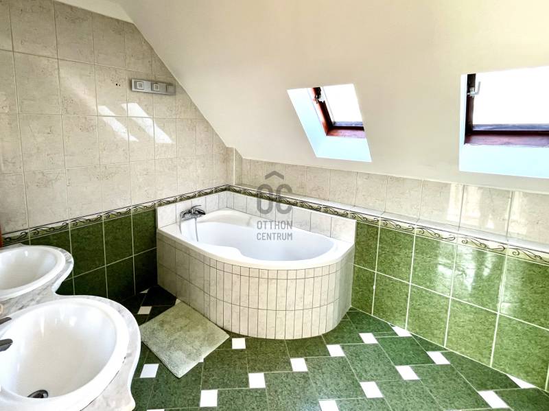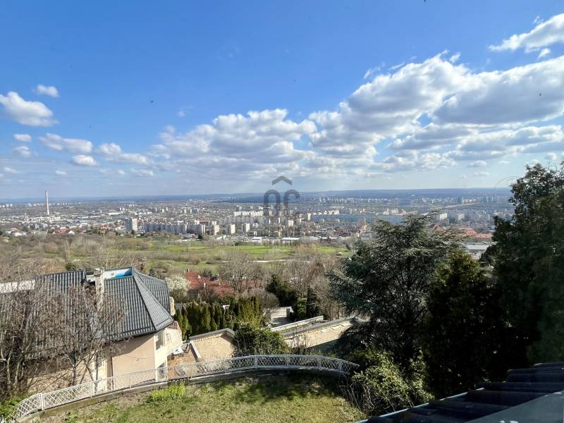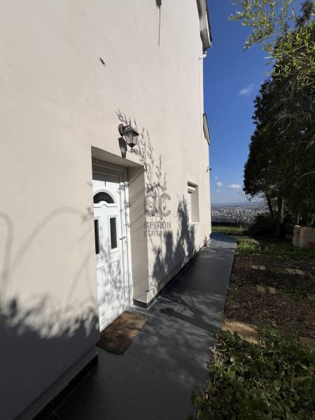 Csodálatos panoráma, egyedi tervezés, nagy, világos terek jellemzik ezt a 350 m2-es, 3 szintes családi házat.A ház 2000 körül épült, de 2019-ben jelenlegi tulajdonosa korszerűsítette, szigetelte, felújította. Kialakításra került egy új, elektromos kazánnal működtetett fűtési rendszer (padlófűtés), melynek támogatására egy napelemrendszer is telepítésre került. A ház három szintre tagolódik.Az alsó szinten három tároló és hobbiszoba, egy kádas fürdőszoba és a kazánház található.Az emeleten egy tágas, napfényes, hatalmas terasszal rendelkező amerikai konyhás nappali, egy tároló, egy hálószoba, és egy zuhanyzós fürdőszoba kapott helyet.A tetőtérben három nagyméretű, különnyíló hálószoba található egy kádas és zuhanyzós fürdőszobával.Az alsó szinten egy teljesen elszeparált, külön bejárattal rendelkező, kertkapcsolatos, panorámás vendégház is kialakításra került, amelyben kettő szoba, egy konyha, egy előszoba, és egy zuhanyzós fürdőszoba található. A kert rendezett, locsolórendszerrel ellátott, és egy jelenleg használaton kívüli medence is található benne.A házhoz tartozik egy utcáról nyíló, két beállásos garázs, de az udvaron további egy parkolóhely is kialakításra került. A panoráma mind az udvarról, mind a teraszról lélegzetelállító! Ez a családi ház ideális választás azok számára, akik a város közelségét, de a nyugalmat és a természetet is keresik. Mind saját célra, mind befektetésnek kiváló választás!Az ingatlan, igény esetén, bútorozva is megvásárolható.Ne késlekedjen! Jöjjön és nézze meg még ma!