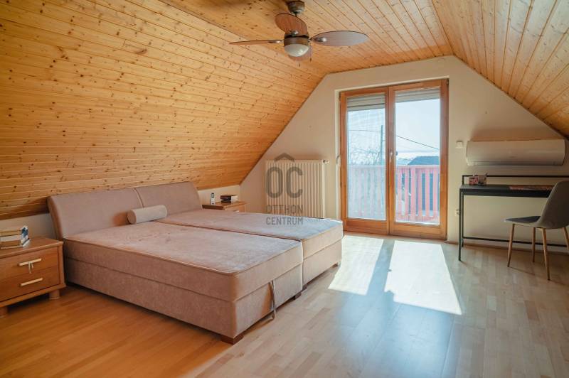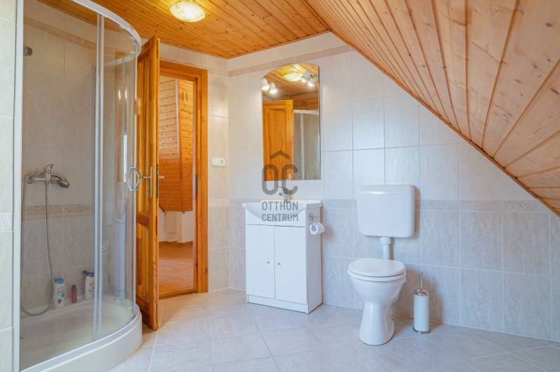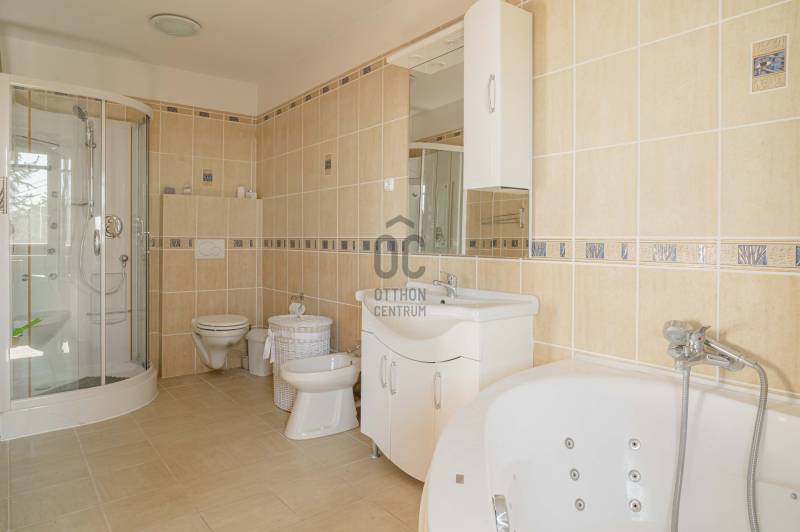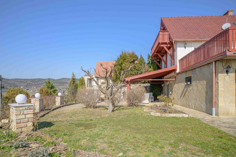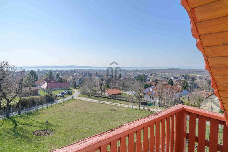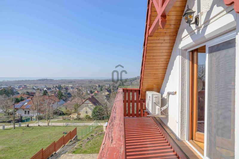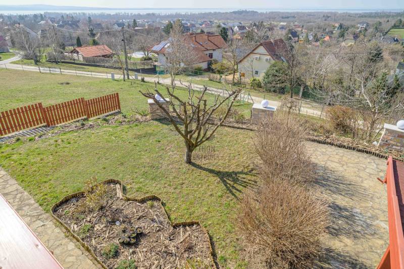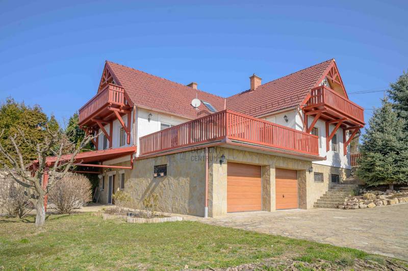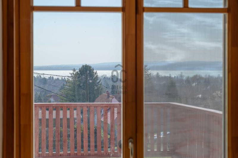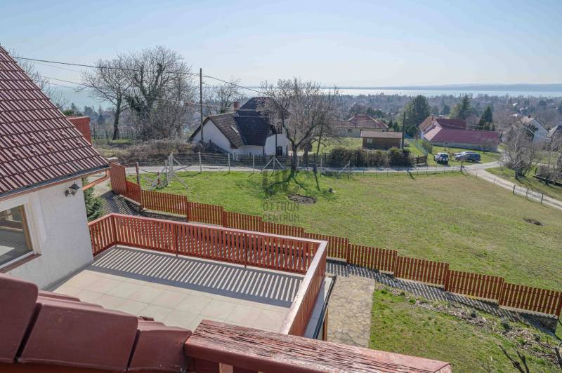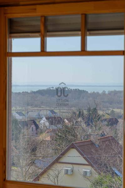 BALATONGYÖRÖKÖN VÁRJA ÚJ TULAJDONOSÁT EGY BELTERÜLETI, ÖSSZKÖZMŰVES, 2 GENERÁCIÓNAK IS MEGFELELŐ, LENYŰGÖZŐ LAKÓÉPÜLET, GRANDIÓZUS ÖRÖKPANORÁMÁVAL. AZ OTTHON CENTRUM KIEMELT AJÁNLATA !Csodás környezetben, egy szellősen beépített domboldal kiemelkedő részén található a 790 m2-es, ideális méretű telek. A gondosan tervezett kerben a dísznövények mellett meggy-, cseresznye-, barack-, diófa és fügebokor adja jóízű termését. A tiszta levegőt itt szinte \"harapni lehet\". Közel az erdő, de az 5 csillagos strand is mindössze negyedóra séta. Csendes, békés, biztonságos környék.Az ingatlanról - már a kertből is - kivételesen széles kilátás tárul elénk az ezerarcú, ezerszínű tóra - előtérben a Szent Mihály kápolnával - és a Keszthelyi hegység egyik legszebb részére. Az épület főbb ismérvei:2000-ben épült, a mesés panoráma ihlette tájolással. Itt minden a Balatonról szól! Nagyvonalúan kialakított tágas, barátságos terek jellemzik a házat.Néhány éve moderrnizálták a gépészetet, a legjobb Vaillant kombi gázkazánra cserélték a fűtőrendszert, 250 literes melegvíz tárolóval. A konyhai gépek is megújultak. Kamera - és riasztórendszer került beszerelésre. A korszerű nyílászárók fából készültek, szúnyoghálóval, redőnnyel ellátva.Kémény van, igény szerint kandalló, cserépkályha beépíthető. A 3 szinten megálmodott ház beosztása:Földszint: Árnyas teraszról nyílik a főbejárat egy méretes nyappaliba. Innen átmehetünk a dupla garázsba, egy részben leválasztott közlekedőből a konyhába, a nagy méretű háztartási helyiségbe/ tárolóba, és egy vendég mosdóba. (A háztartási helyiségből is van ajtó a garázshoz. )Kényelmes faburkolatú lépcső vezet a következő szintre, ahol egy 36 m2-es panoráma terasz hívogat. Mind a felső nappali, mind a nagyobbik hálószoba teraszkapcsolatos. A nagy hálóból nyíló, ugyancsak panorámát nyújtó fürdő és toalett jakuzzi káddal, zuhannyal és bidével felszerelt. További helyiségek egy vendéháló, második fürdő és egy kis tároló. Mivel ez a lakrész kívülről is megközelíthető és a nappaliban egy konyhasarok kialakításához alkalmas vízes kiállásokat is készítettek, két generáció életéhez vagy több család zavartalan nyaralásához is adottak a feltételek. Csupán érdekességként: a rusztikus dekor tégla falburkolatba pl. az 1800-as évekből származó. G E P (Gróf Eszterházi Pál ) jelölésű darabokat építettek be.A tetőtérben két háló és fürdő (toalettel) kapott helyet. A szobákból erkélyek nyílnak -már említeni sem kell, milyen kilátással.Összefoglalóan: 2 nappali, 4 háló, 4 fürdő 5 db wc van az épületben, + konyha, háztartási helyiség, dupla garázs.Ha megérintette ez a különleges ingatlan, további kérdései vannak, illetve megtekintené, kérem, hívjon / írjon a megadott elérhetőségeken.Ez az ingatlan a \"Felező csomag\" megbízási portfólióhoz tartozik. Részletek az Otthon Centrum weboldalán.