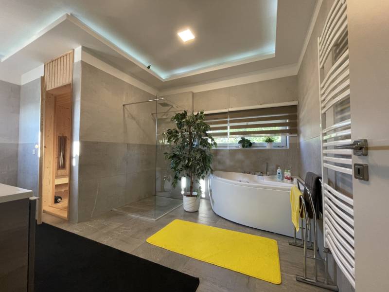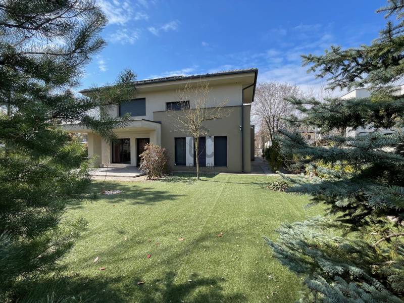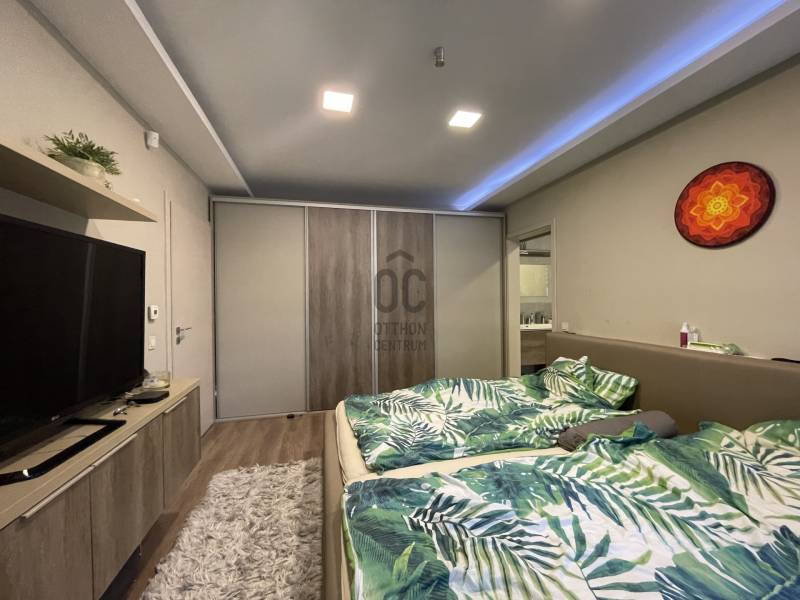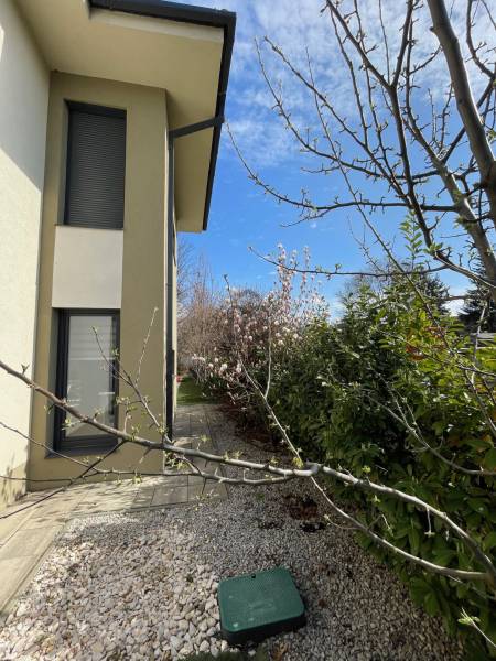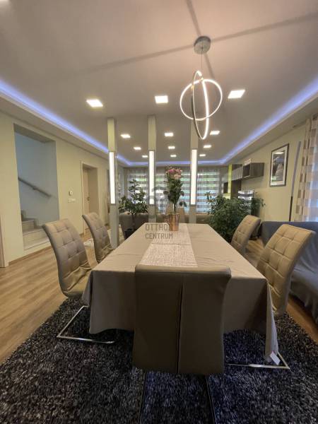 Debrecen Nyulas városrészének egyik legkedveltebb, csendes utcájában, a Nagyerdő közelében eladó egy 2017-ben épült, bruttó 285 m²-es, két szintes, prémium családi ház 720 m²-es telken.A ház átgondolt elrendezésű: nappali + 5 hálószoba + dolgozó, 3 fürdőszoba, valamint dupla garázs és számos kényelmi helyiség biztosítja a család minden igényét.A nappaliból nyíló fedett terasz és az emeleti erkélyek közvetlen kapcsolatot adnak a gondosan parkosított kerttel és a természet közelségével.MŰSZAKI TARTALOM – modern, fenntartható megoldások:* geotermikus hőszivattyús rendszer (mennyezet- és falfűtés/hűtés, padlófűtés)* napelemrendszer – rendkívül alacsony fenntartási költség* prémium, hő- és hangszigetelt nyílászárók, elektromos alumínium redőnnyel* riasztó és kamerarendszerBELSŐ KIALAKÍTÁS – kényelem és funkcionalitásFöldszint:- tágas nappali, látványos térelválasztással- gépesített, modern konyha- szülői lakrész saját fürdővel és gardróbbal- dolgozószoba- mosókonyha, vendégmosdó- dupla garázs, teraszkapcsolatEmelet:- 4 külön nyíló, világos hálószoba- 2 fürdőszoba (az egyikben infraszauna)- beépített gardróbok- 2 erkélyEz az ingatlan ideális választás azoknak, akik csendes, zöld környezetben, mégis a városhoz közel keresnek modern, alacsony fenntartású, hosszú távon értékálló otthont.