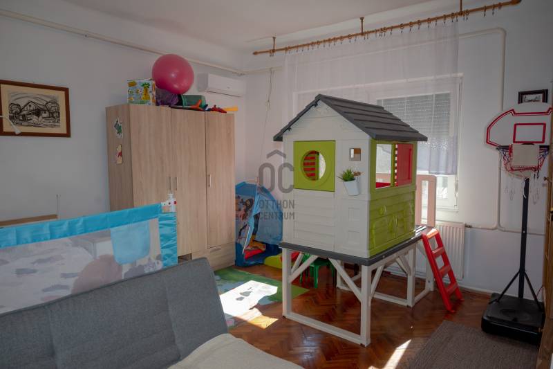 Eladó egy 107,88 nm-es, masszív szerkezetű családi ház, amely beton alapon, szilikát falazattal és felújított lemez tetőfedéssel épült, és egy 4322 nm-es, dupla szélességű telken helyezkedik el. Az ingatlan 1983-ban épült, azonban 2021 és 2024 között jelentős felújításon és korszerűsítésen esett át, így a szerkezet stabilitása modern megoldásokkal párosul.A ház kialakítása ideális nagyobb családoknak vagy akár két generáció együttélésére:- 4 szoba- 2 konyha- 2 fürdőszobaAz elrendezés lehetővé teszi akár két külön élettér kialakítását is, így mindenki megtalálhatja a saját nyugalmát.A felújítás során többek között megtörtént:- villanyhálózat csere- tető felújítás- nyílászárók cseréje- belső átalakítások- klímák telepítése- burkolatok részleges cseréjeA komfortot tovább növeli:3 db inverteres klíma- gázcirkó fűtés (melegvíz rendszer bővíthetőséggel)- hangulatos cserépkályhaAz ingatlan ipari árammal (3x16A) és vezérelt árammal is rendelkezik, ami különösen előnyös a mindennapi használat és a rezsiköltségek optimalizálása szempontjából.A műanyag nyílászárók redőnnyel felszereltek, a telek pedig a környezetéhez képest magasabban helyezkedik el, így a talajvíz nem jelent problémát.A külső adottságok igazán kiemelik ezt az ingatlant a piacon:- 4322 nm-es telek, két utcai bejárattal -egyik bejárat automata, távirányítós kapuval ellátott- 4 garázs, melyből az egyik dupla, a téglagarázs pedig szerelőaknát és egy kis pincét is rejtEzen felül:- 4 helyiségből álló melléképület- külön kazánház- parkosított, leválasztott pihenőkert fedett kiülővel és esti térvilágítássalA ház főút mentén helyezkedik el, így kiválóan megközelíthető, a buszmegálló mindössze 2 perc sétára található, ahonnan Nyíregyháza és Debrecen is rendszeresen elérhető.✔ 107,88 nm lakótér✔ 4322 nm telek, dupla utcafronttal✔ 4 szoba, 2 konyha, 2 fürdőszoba✔ Felújított állapot (2021–2024)✔ 3 klíma, gázcirkó + cserépkályha✔ Ipari áram + vezérelt áram✔ 4 garázs (1 dupla, szerelőaknás)✔ Melléképület, kazánház✔ Kétgenerációs lehetőségEz az ingatlan ritka lehetőség azok számára, akik nagy telekkel rendelkező, jól megközelíthető, sokoldalúan hasznosítható otthont keresnek, legyen szó családi életről vagy akár vállalkozási célról.A hirdetésben szereplő információk a megbízótól kapott adatok alapján készültek, pontosságukért felelősséget nem vállalunk! AZ ALAPRAJZ CSAK TÁJÉKOZTATÓ JELLEGŰ!Amennyiben vásárláshoz hitelre is szüksége van, független hitel tanácsadónk ingyenesen tud Önnek segítséget nyújtani a legjobb konstrukciók kiválasztásában és a folyamat lebonyolításában. Irodánk kereső ügyfeleinknek teljes körű szolgáltatást nyújt, szakszerű tanácsadással, energetikai tanúsítvány elkészítésével, hitelügyintézéssel és profi ügyvédi segítséggel. Abban az esetben ha az ingatlan felkeltette érdeklődését keressen bizalommal!Lakásbiztosításban is otthon vagyunk!Ingatlan és biztosítás egy helyen! Szakértő kollégáink segítenek megtalálni a legmegfelelőbb ajánlatot.