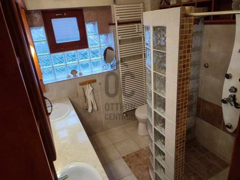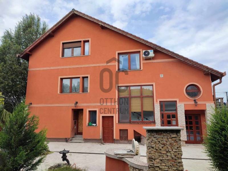 Megvételre kínálom ezt a 697 m2-en elhelyezkedő, 226 m2-es téglából épült, szinteltolásos családi házat, amelyen 1995-ben teljes felújítást végeztek.Az ingatlan 2 önálló bejárattal rendelkező lakrészt + önálló bejárattal rendelkező iroda helyiséget foglal magában. Az ingatlanban 8 szoba, 4 fürdőszoba, továbbá a kertben pagoda, sütögető, valamint kemence nagyméretű szaletliben, jakuzzi, szauna, kerti fürdőház található.A kerítés kővel burkolt, egyedi kapuval.Ezen kívül a kertben van még egy kerti tó is. Néhány fontos Jellemző az ingatlanról:Gépészet : állapota, kora jó, használható, fő egységek cseréje nem indokolt Légtechnika : részben légkondicionáltFűtés típusa : épület központiFűtés technológiája : gáz kazánHő leadó szerkezetek típusa: radiátorokFűtés szabályozás típusa: termosztátMeleg víz ellátás típusa: villanybojlerTetőszerkezet : magas tetőAlakja : nyereg tetőTetőszerkezet anyaga: fa fedélszékesTetőfedés : cserép fedésKülső nyílászárók anyaga : fa és műanyag szerkezetekKülső nyílászárók állapota : jóÜvegezés : 2 rétegű üvegezésNyílászárók gyártási éve, kora : 2015 Komfort fokozat összkomfort, triplakomfort Amennyiben megtetszett Önnek ez a nem mindennapi ingatlan, kérem keressen a megadott elérhetőségen!