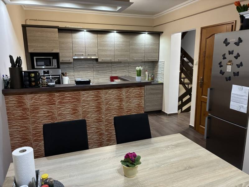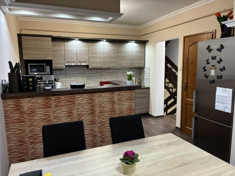 FELÚJÍTOTT, AZONNAL KÖLTÖZHETŐ OTTHON NAGYLENGYELEN – ZALAEGERSZEGTŐL CSAK 10 PERCREZalaegerszegtől mindössze 10 km-re, Nagylengyel csendes, kedvelt részén kínálunk megvételre egy teljes körűen felújított, igényes családi otthont, amely ideális választás mindazok számára, akik nyugodt környezetben, mégis jó elérhetőséggel szeretnének élni.Az ingatlan egy tégla építésű ikerház egyik fele, amely a felújítás során teljesen megújult – korszerű műszaki megoldásokkal és esztétikus kialakítással.✨ AMI MIATT ÉRDEMES MEGNÉZNIteljes körű felújítás (új gáz- és villanyhálózat)háromfázisú villamos rendszerúj nyílászárók redőnyökkelhomlokzati szigetelésúj Lindab lemez tetőfedéskülön mérőórák➡️ egy olyan otthon, ahol a felújítás terhe már nem az Öné JÓL ÁTGONDOLT, TÖBBSZINTES ELRENDEZÉSA három szinten kialakított lakótér kényelmes és élhető:alsó szint:tágas, 29 m²-es amerikai konyhás nappali + fürdőszoba mosókonyhávalközépső szint:hálószoba, gardrób, fürdőszobafelső szint:2 külön nyíló szobaA szinteket egy új, tömör fából készült lépcső köti össze, amely az otthon egyik látványos eleme. RENDEZETT, PRIVÁT UDVARA 450 m²-es, parkosított telek teljesen körbekerített, igényesen kialakított:kovácsoltvas kerítéselektromos kaputérkövezett udvar3 autóbeállós kocsibeálló + saját garázs➡️ biztonságos, kényelmes parkolás több autó számára is IRÁNYÁR: 60 900 000 FTA felújítás mértékét és az ingatlan állapotát figyelembe véve kiváló ár-érték arány a környéken.Ez az ingatlan ideális választás azoknak, akik egy igényesen felújított, azonnal költözhető otthont keresnek, nyugodt környezetben, mégis közel a városhoz. További információért vagy megtekintésért keressen bizalommal!A bútorzat megegyezés tárgyát képezi.