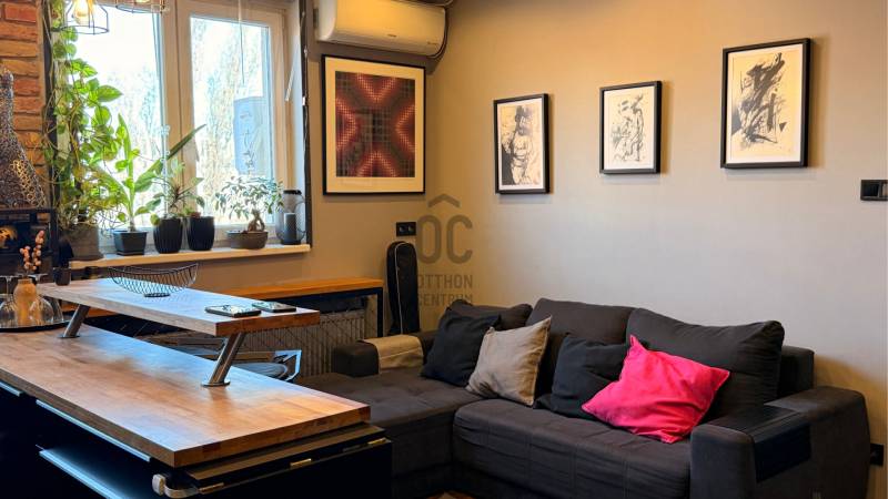 A Corvinnegyedben, kiváló közlekedés és infrastruktúra mellett kínálunk megvételre egy 57 m²-es, 3 szobás, különleges hangulatú lakást egy történelmi múltú épületben.Az ingatlan egy korábbi ipari épületben található, amely a századfordulón a Thek Endre-féle bútorgyár nagyüzemeként működött. A társasház az elmúlt években több felújításon esett át: megújult a lépcsőház és új lift került beépítésre, így a történelmi karakter modern komforttal párosul.A lakás teljes körű felújításon esett át: tégláig visszabontva, minden műszaki tartalom megújult. Az enteriőr egyedi industrial stílusban került kialakításra, igényes anyaghasználattal és átgondolt részletekkel.Főbb jellemzők:57 m² alapterület3 szobateljes műszaki felújításegyedi industrial belső kialakításházközponti fűtés, melegvíz bojlerrel3 klímaberendezésfelszerelt konyhabiztonsági ajtók, kamerarendszer, riasztó a nyílászárókbanA lakás bútorozottan kerül értékesítésre: a gyerekszobai bútorokon kívül minden berendezés a lakásban marad.A szinten található egy külön mosókonyha, amely – társasházi hozzájárulás esetén – akár a lakáshoz is csatolható. Az ingatlan elhelyezkedése miatt további bővítési lehetőségek is felmerülhetnek, például a tetőtér irányába.A tulajdonos a lakás rendszereit rendszeresen karbantartó szakemberek elérhetőségeit is át tudja adni az új tulajdonosnak.