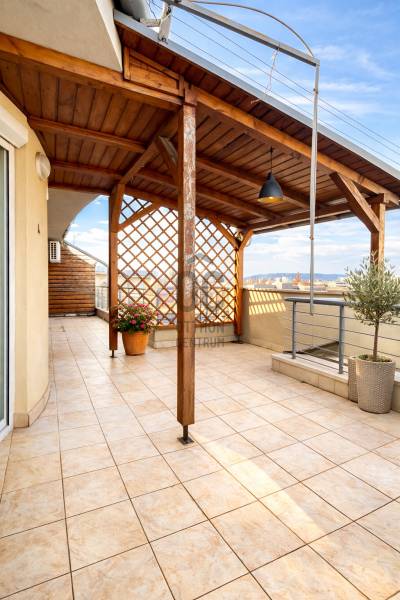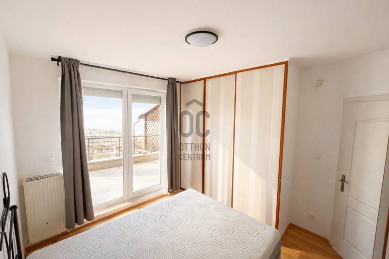 46m2-es TETŐTERASZ a 13, kerület - KEREKES UTCÁBAN (Béke-tér).KIadó egy 77 m2-es (+46m2 tetőterasz) jó állapotú részben bútorozott lakás a következő paraméterekkel:- 46m2-es tetőterasz;- 32m2-es nappali-konyha;- 2 hálószoba;- Házközponti fűtés;- 5m-es tároló;- 16m2-es teremgarázs;- Társasház 2006-ban épült;- Macska hozható, kutya sajnos nem hozható.A lakás a folyósó végén található, amely lehetőséget biztosított a lakás tulajdonosának a folyósó részből 5m2 leválasztására, ahol tároló szerkrények kerültek kialakításra. Ezen leválaszott részt rácsos ajtó véd az illetéktelen belépéstől.Ha a fényképek és a lakás paraméterei elnyerték tetszését, kérem keressen bizalommal!