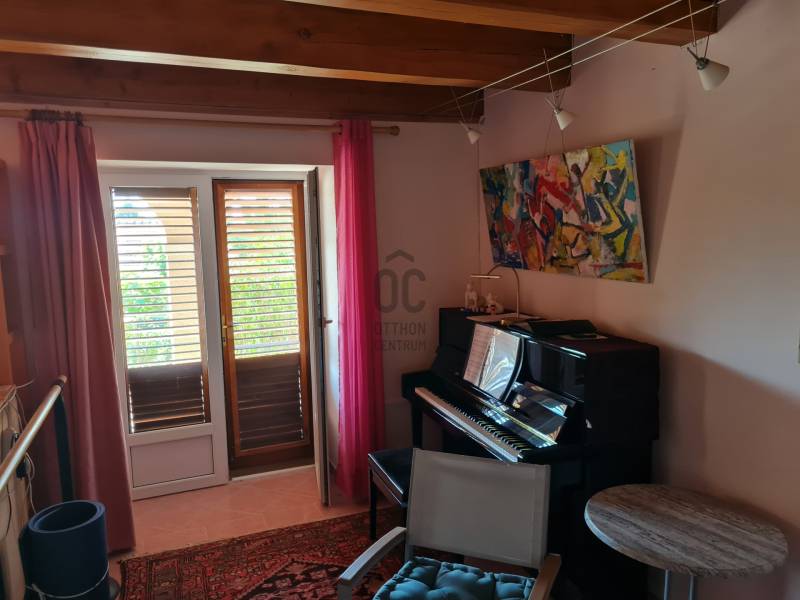 Badacsonyban vált eladóvá ez a különleges atmoszférával rendelkező épület, mely egyedi kialakításával egyből kitűnik az őt körülölelő ingatlanok közül. A területről és a ház egészéből meseszép a panoráma a Balaton vizére, de ha ez nem lenne elég, a Badacsony is ott magasodik az épület mögött.A belterületi, 1519 négyzetméteres telken a jelenlegi tulajdonos tervei és álmai alapján készült el 2005-ben a hétvégi házként bejegyzett ingatlan – mely családi otthonnak is kitűnő választás lehet -. Az épület alapjául egy már meglévő bazaltkő pince szolgált, ez került átépítésre és bővítésre korszerű anyagok felhasználásával.A ház két szinten összesen 166 négyzetméternyi hasznos alapterülettel rendelkezik.A földszinten kialakított helyiségeket az előtérből közelíthetjük meg. Itt található egy 27 négyzetméteres, parasztfödémes, meghitt hálószoba, mely közvetlen kertkapcsolattal rendelkezik és akár két különálló hálóvá osztható. Mellette kapott helyet a lépcsőház, egy fürdőszoba, tároló, pince és egy műterem.Az emeleten lévő helyiségek közül a teljes üvegfelülettel ellátott nappali/műterem és a hozzá tartozó terasz olyan egyedi és megismételhetetlen hangulatot áraszt, hogy itt egyből az az érzése az embernek, hazaért...Ezt a nappali részt egészíti ki még egy közlekedő, hálószoba, fürdőszoba, konyha és étkező, valamint egy loggia is.Az épület mindkét szintjén beépítésre került egy-egy fatüzelésű kályha, így hűvösebb időszakban ezek szolgáltatják a meleget.A kert teljesen körbekerített, több autó egyidejű parkolása is megoldható telken belül.Az udvar teraszos kialakítású, akár egy medence, gyermek játszó vagy nyári konyha kiépítésére is bőven van még hely.Az épület melletti részen egy fedett, hangulatos kerti kiülő is helyet kapott, a kert alsó részén pedig egy téglából épült tárolót is építettek.A ház egész évben aszfaltos úton könnyen megközelíthető, a Balaton partjától gyalogosan 15 percre, a központtól 2 perces autóútra van.Ajánlom az ingatlant mindazok figyelmébe, akik a “béke szigetét” keresik távol a világ zajától. Az épület állandó lakhatásra és nyaralónak is egyaránt tökéletes választás lehet!Amennyiben kérdése merülne fel az épülettel kapcsolatban, vagy szeretné azt megtekinteni, kérem keressen megadott elérhetőségeim egyikén!Az adatok kizárólag a megbízóink által rendelkezésünkre bocsátott információkon alapulnak.Fentiekre tekintettel, az adatok teljességéért, helyességéért és aktualitásáért nem vállalunk felelősséget.Az árváltozás, adatmódosítás és közbeni értékesítés jogát fenntartjuk, mindezekért jogi felelősséget nem áll módunkban vállalni.