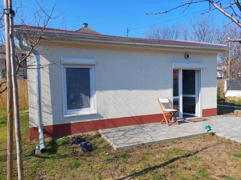 Eladó egy kis cuki új építésű szépen rendezett mini garzon méretű kertes ház Újfehértó Éva utcán.Ár: 24.990.000 Ft.Nézze meg videónkat is: http://youtu.be/I14me4HmOYkAz ingatlan alap méretei:- a telek mérete: 485nm,- a ház alapterülete: 36nm.- a tároló alapterületei: 2nmAz épület hasznos alapterülete 28nm melyben található:- nappali-konyha-ebédlő,- fürdőszoba.Ez a kis cuki ingatlan azok számára lehet ideális választás, akiknek megfelel a mini garzon méret és inkább új házba költöznének, mert nem akarnak bajlódni felújításokkal, de a jövőre nézve meg van a háznak a bővítési lehetősége is.A kertes ház 2024-ben épült beton alapon könnyűszerkezetes technológiát alkalmazva, melynek köszönhetően az épület bővítése rendkívül gyorsan és költséghatékonyan megoldható. A tetőszerkezete nyeregtető, zsindelyfedéssel ellátva. A fűtés a nappaliban hűtő-fűtő klímával van megoldva, a fürdőszobában pedig padlófűtést építettek be. Az épületben villany (1×32A), víz, és csatorna be van kötve, gázcsonk pedig a telken belül található. A ház rendkívül jó A+ energetikai kategóriába esik, így igen alacsony a rezsi költsége. Az épület jó minőségű ablakain és a bejárati ajtón távirányítással vezérelt elektromos redőnyök vannak. A konyhai részen a 3 hosszanti csíkban elhelyezett üvegtéglák jól bevilágított teret eredményeznek. Mivel az ingatlan gyakorlatilag új, és csak alkalomszerűen volt használva, azonnal beköltözhető, felújítást semmilyen formában sem igényel. A kerítés nagyon szépen kivitelezett, gépkocsival a kapun keresztül lehet beállni. Az első udvar nagy része térkövezett, autó beállásra alkalmas, valamint a bejárattal szemben van elhelyezve a szintén új rönkfa oszlopokból készült kerti kiülő pad.Az előkert részén helyezkedik el egy új kerti szerszámtároló, illetve itt lehet létrehozni egy kis konyhakertet is. A szépen gondozott hátsó kertben fiatal gyümölcsfák találhatók és ezen a területen, szükség esetén a ház további bővítése is lehetséges. A környék kifejezetten csendes, nyugodt kertvárosias. Bár az ingatlan előtt jelenleg még murvával borított út található, de a két szomszédos utca felől aszfaltozott úton közelíthető meg.FONTOS!Az ingatlan per és tehermentes, azonnal beköltözhető. Mivel az ingatlan melléképületként szerepel a nyilvántartásban, így normál jelzáloghitelre alkalmas!FIGYELEM!Az ingatlan Újfehértó központjától 10 percre található, így könnyen elérhetők az iskolák, óvodák, bölcsőde, orvosi rendelők, fogászat, gyógyszertár, bank, templom, az önkormányzati hivatal, a Városi uszoda és számtalan üzlethelyiség is. Továbbá a közelben található a SPAR, a PENNY és a LIDL bevásárló központok is.Újfehértó város jelenleg az ötödik legnépesebb város Szabolcs-Szatmár-Bereg vármegyében. Nyíregyházától körülbelül 16 kilométerrel délre, Debrecentől 35 kilométerrel északra, a Nyírség Hajdúság felé eső peremén fekszik. Két legfontosabb közúti megközelítési útvonala a 4-es főút, illetve az M3-as autópálya, ezeknek köszönhetően az ország távolabbi részei felől is könnyen megközelíthető.A hazai vasútvonalak közül a várost a Budapest–Debrecen–Nyíregyháza–Záhony-vasútvonal érinti, melynek egy megállási pontja van itt. A környező kisebb települések közül Hajdúdoroggal, Hajdúböszörménnyel, Nagykállóval, Nyíregyháza Butyka nevű különálló városrészével, Érpatakkal és Kálmánházával mellékutak kötik össze.Ha felkeltette érdeklődését, hívja irodánkat bizalommal!Ha hitelre van szüksége éljen ingyenes, személyre szabott hitel ügyintézési szolgáltatásunkkal is.