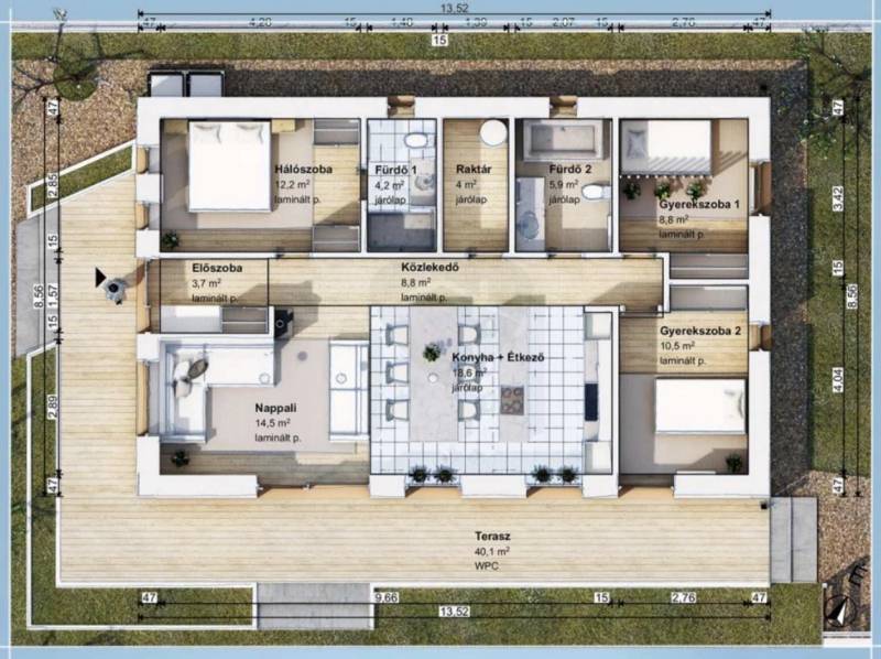 Erdőkertesen kínálunk megvételre egy 2025-ben épült, téglaépítésű családi házat, amely egyedi tervezésével és átgondolt elrendezésével kényelmes, modern otthont biztosít. A 94 négyzetméteres lakótérhez egy 826 négyzetméteres telek tartozik, amely ideális választás mind a mindennapi élethez, mind a pihenéshez.Az ingatlan belső kialakítása a mai elvárásoknak megfelelő: a tágas nappali és az amerikai konyha egy légtérben kapott helyet, amelyet a nagy belmagasság és a délnyugati tájolás különösen világossá és élhetővé tesz. A három külön nyíló szoba és a két fürdőszoba praktikus elrendezést biztosít, így családok számára is kiváló választás. A 40 négyzetméteres terasz közvetlen kapcsolatot teremt a kerttel, harmonikusan összekapcsolva a belső és külső tereket.A ház hőszivattyús technológiával ellátott, ez vezérli a padlófűtést. A nappali és az egyik háló légkondicionálóval felszerelt, így minden évszakban komfortos lakókörnyezetet nyújt. A cseréptetős kialakítás és a korszerű műszaki megoldások az energiahatékonyságot és a fenntarthatóságot szolgálják. Az udvari beálló kényelmes parkolási lehetőséget biztosít két autó számára is.Az ingatlan jogi és műszaki adottságainak köszönhetően alkalmas a CSOK Plusz és az Otthon Start program igénybevételére is, ami jelentős előnyt jelenthet a leendő tulajdonos számára. Igény esetén a hitelfelvétel lebonyolításában is segítséget nyújtunk, valamint ügyvédi közreműködést is biztosítani tudunk a vásárlás teljes folyamatához.Erdőkertes családi házas övezete nyugodt, kertvárosi hangulatot kínál, ahol az alacsony beépítettség és a zöld környezet dominál. A környék ideális mindazok számára, akik csendes, természetközeli életformát keresnek Budapest vonzáskörzetében.A közlekedés kiváló: a közelben elérhető vasútvonalról a Nyugati pályaudvar irányába indulnak járatok, emellett autóval a 3-as főút és az M3-as autópálya is könnyen megközelíthető, így a napi ingázás is kényelmesen megoldható.Amennyiben felkeltette érdeklődését ez az igényesen kialakított ingatlan, kérem, keressen bizalommal további információkért vagy a megtekintés egyeztetéséhez.