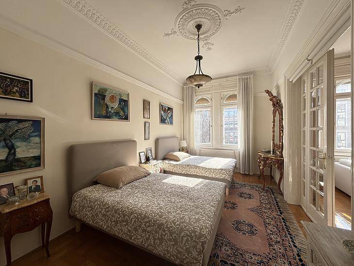 Klasszikus nagypolgári elegancia a Teréz körúton – 167 m² világos saroklakásBudapest egyik legpatinásabb körútján, a Teréz körúton kínálunk megvételre egy 167 m²-es, kivételes hangulatú nagypolgári lakást egy liftes, rendezett társasház 3. emeletén.A sarok elhelyezkedésű ingatlan három tágas, utcai nézetű szobával rendelkezik, melyek ablakai a Teréz körútra és a Szondi utcára néznek. A lakás ennek köszönhetően egész nap rendkívül világos, a nagy ablakok és a klasszikus polgári térarányok elegáns, levegős atmoszférát teremtenek.Az ingatlan restaurált nagypolgári állapotban van: a lakás megőrizte eredeti karakterét és arányait, miközben a mai kor kényelmi elvárásainak is megfelel. A teljesen gépesített konyha, a két fürdőszoba, valamint a külön gardróbszoba kényelmes és praktikus mindennapi használatot biztosít.Ez az otthon ideális választás mindazok számára, akik értékelik a klasszikus budapesti nagypolgári lakások eleganciáját, a tágas tereket és a reprezentatív környezetet, ugyanakkor fontos számukra a központi elhelyezkedés és a modern komfort. Egy igazi karakteres városi lakás, amelyben a történelmi hangulat és a mai életstílus harmonikusan találkozik.Az adatok tájékoztató jellegűek!