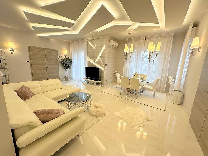 Eladó luxuslakás Belső Újlipótváros szívében, a Szent István körúthoz közel!Kivételes lehetőség Budapest egyik legkedveltebb részén: megvételre kínálunk egy 140 m²-es (tulajdoni lapon 135 m²), kifogástalan állapotú, prémium minőségben felújított lakást.Az ingatlan tágas, jól átgondolt elrendezésű: 4 külön nyíló szoba, 2 fürdőszoba, valamint 2 WC (ebből az egyik külön helyiségben) biztosítja a kényelmet akár nagyobb család számára is. A lakás különlegessége a két erkély, melyek közül a nagyobb az utcára, a kisebb a csendes belső udvarra néz.Keleti–nyugati tájolásának köszönhetően egész nap rendkívül világos, napfényes terekkel rendelkezik. A modern, beépített bútorok és gépesítés a vételár részét képezik, így az ingatlan azonnal költözhető. A praktikus gardróbszoba tovább növeli a komfortérzetet.Főbb jellemzők:• Luxus állapot• 4 szoba• 2 fürdőszoba + 2 WC• 2 erkély (utcai és udvari)• Kelet–nyugati fekvés, világos terek• Távfűtés• Teljes bútorzat és gépesítés a vételárbanIdeális választás nagycsaládosok számára, illetve azoknak, akik tágas, elegáns otthont keresnek kiváló lokációban.Irányár: 242 millió FtNe hagyja ki ezt a ritka lehetőséget – keressen bizalommal további információért vagy megtekintésért! Ügyfeleink részére díjmentes, bankfüggetlen hitelügyintézést biztosítunk.