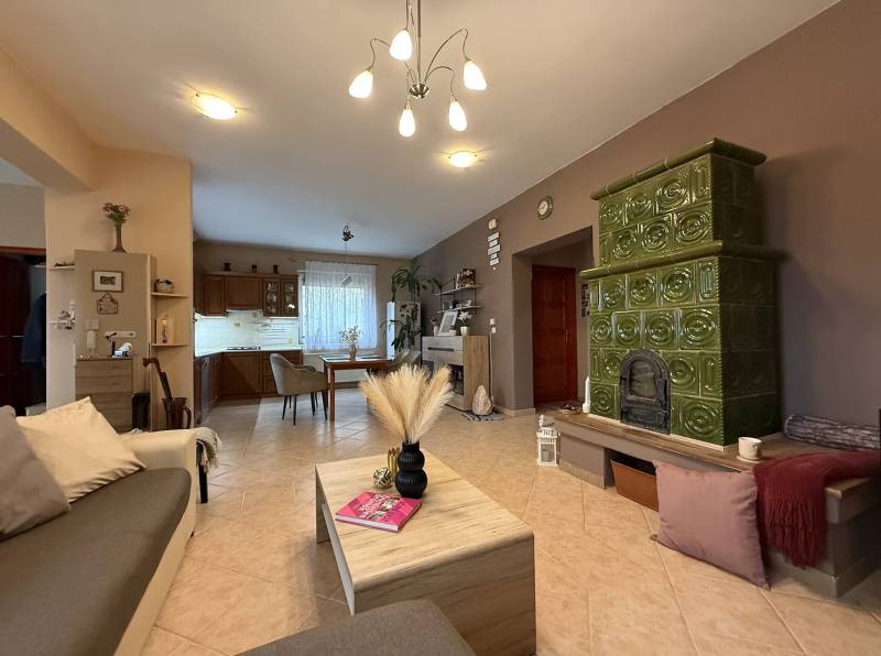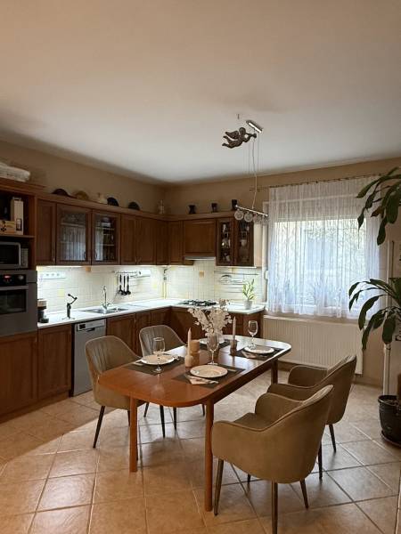 Ha olyan otthont keresel, ahol a természet közelsége, a nyugalom és az élhető terek egyszerre adottak, akkor ezt érdemes megnézned.Ez a 2006-ban épült, 117 m²-es ikerház egy 443 m²-es, intim kerttel rendelkező telken helyezkedik el, ahol valóban elszeparált életteret kapsz.A ház egyik nagy előnye, hogy a lakótér a kert szintjén található, így teljes értékű kertkapcsolatos életet élhetsz, miközben a garázs és az autóbeállók külön, az utcaszinten helyezkednek el.Elrendezés, ami valóban élhetővé teszi:- amerikai konyhás nappali + 2 külön nyíló hálószoba- dolgozósarok (home office-ra ideális), de tanuló saroknak is alkalmas- kád+zuhany+WC, illetve külön mellékhelyiség- praktikus háztartási helyiség- kamraA nappali központi eleme a hangulatos, működő cserépkályha, ami nemcsak látvány, hanem valódi fűtési alternatíva is.Amitől igazán szerethető az ingatlan:- 31,4 m²-es, nyugati tájolású terasz, így a naplementés esték garantáltak, részben fedett- intim hátsó kert + rendezett első kert- akár 3 autónak alkalmas beállási lehetőség + 17 m²-es fűtött garázs- csendes, aszfaltozott utca, nyugodt környezetMűszaki tartalom:- tégla építés- cserép tetőfedés- cirkó fűtés + cserépkályha- klíma- műanyag nyílászárók- beépített konyhaA tetőtér beépíthető, így a jelenlegi alapterület tovább bővíthető – ideális nagyobb családnak vagy értéknövelésre.Lokáció:Érd egyik kedvelt, zöldövezeti részén, a Fundoklia-völgy közelében, ahol a természet és a városi elérhetőség tökéletes egyensúlyban van. Ha egy nyugodt, mégis jól élhető otthont keresel Érden, ezt érdemes személyesen is megnézned.Hívj most, és egyeztessünk időpontot!