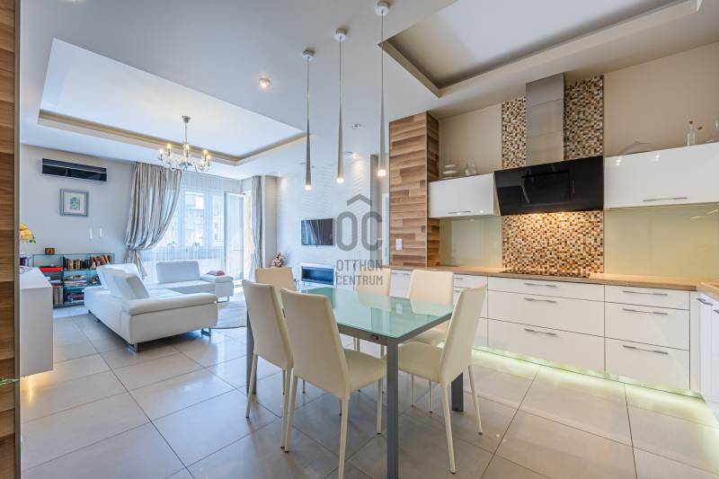 Ez nem csupán egy lakás, hanem egy életstílus. Tágas, átlátható terek, egyedi elrendezés jellemzi ezt a 89 m2-es luxus lakást, mely hatalmas ablakainak és remek fekvésének köszönhetően egész nap fényárban úszik!Elosztása kiváló. Hatalmas, amerikai konyhás, étkezős nappali, és két hálószoba található benne, melyekhez 1-1 privát fürdőszoba tartozik. Az előszobából egy külön vendégmosdó is nyílik, és egy rendkívül praktikus háztartási helyiség is kialakítára került. A lakás különlegessége a hangulatos erkély, ahonnan egy kellemes italt kortyolgatva élvezhetjük a belváros nyüzsgését. Az ingatlan egyedi tervezésének köszönhetően egy igazán különleges otthon, ahol a modern életstílus és a klasszikus értékek találkoznak. A lakás egy 1934-ben épült bauhaus ház 4. emeletén található. A műemelék épület kiváló állapotú kívül és belül egyaránt. A lakást jelenlegi tulajdonosa néhány éve teljesen felújította, saját ízlésére szabta. Kiváló minőségű fa nyílászárók, prémium burkolatok és szaniterek, egyedi fűtőtestek és klíma, minden hangulatnak megfelelő világítás, elegáns, gépesített konyha, egyedi design jellemzi. Ide az új tulajdonosnak csak beköltöznie kell.Elhelyzkedése kiváló. Lipótváros a belváros egyik legkedveltebb része, amely nemcsak központi elhelyezkedése, hanem kiváló ellátottsága miatt vonzó. A környéken számos étterem, kávézó, szórakozóhely, színház és bolt található, így minden, ami az igazi belvárosi élethez kell, egy karnyújtásnyira elérhető. Ha Ön egy igazán egyedi, kényelmes, mégis elegáns otthonra vágyik, ne habozzon! Jöjjön és nézze meg még ma! Ez a lakás tényleg olyan, mint a képen!