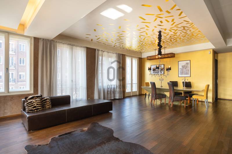 New York-stílusú városi karakter, Budapest közepénA belváros egyik legjobb és legnyüzsgőbb lokációjában vagyunk: az V.kerület határán, a Váci Fashion Street, Deák-tér és a már VII. kerülethez tartozó Madách-tér közvetlen szomszédságában. Ha nem egy átlagos lakást keresel, hanem egy igazi nagyvárosi életteret, melyből minden irányba városi panoráma tárul, akkor ez a 152 m²-es, különleges hangulatú ingatlan azonnal magával ragad. A lakás legerősebb karakterjegye a lenyűgöző, több, mint 100 m²-es nappali–étkező tér, amely ritka szabadságérzetet ad, és tökéletes alapot teremt egy loftos, modern, metropolisz stílusú otthonhoz vagy akár exkluzív reprezentatív térhez. Tulajdoni lap szerint 4 szobás lakás, de átalakításon esett át 10 éve.Műszaki tartalom:-padlófűtés -klíma-elektromos redőny-Miele gépek-2 db fürdőszoba+vendég wc-fa padlóSarok lakás, gyönyörű napfényes, minden helyiségből nyílik francia erkély, melyről 270 fokos városi panoráma tárul elénk. A tér adottságai rendkívül sokoldalúak: ideális választás lehet annak, aki egyedi otthont, városi penthouse-hangulatot, vagy akár üzleti célra is jól használható, karakteres ingatlant keres.ÉPÜLETRŐL:Az épület tervezésében több neves építész vett részt: Hübner Tibor, Janáky István, id. Wälder Gyula.A New Yorkot idéző, metropolisz és art deco hangulatú tégla épülettömb nagyon egyedi egész Budapesten. Azért idéz “New York-i” hangulatot, mert több olyan tömeg- és homlokzati gesztust hoz, ami a Manhattan-i irodaházak és felhőkarcolók világára emlékeztet.Vörösen izzó homlokzata kellemes kontrasztot nyújt a néhány évvel ezelőtt megújult Madách-tér betonszürke dominanciájával szemben (a tér közepén helyet kapó talajszökőkúttal és az U-alakú árkádsorral együtt az összhatás már-már egészen olaszos), neobarokk kovácsoltvas erkélykorlátai és art deco pártázata révén nívós párja a szomszédos, piramistetős Anker-háznak, egyben pedig a belváros egyik legmenőbb műemléképülete.MIÉRT EZ AZ INGATLAN?-Belvárosi presztízs és kiváló elérhetőség: Kiskörúti környezet, gyalogosan is könnyen elérhető belvárosi csomópontokkal, szolgáltatásokkal, üzletekkel, vendéglátással.-Art Deco Épület homlokzata és az ingatlan adottsága, belmagassága, kialakítása egyedi! -Nagyvárosi hangulat, intézményi múlt: a ház története és léptéke stabil, „klasszikus belvárosi” érzetet ad, miközben az elhelyezkedése miatt a környék egész nap él.-Irodai célra is: a környéken tipikus módon irodai/szolgáltatói funkciók is megjelennek, így üzleti célra is erős cím.- Nagy nettó lakóterület: 152 m2 (4 szoba), nagy belmagasságTovábbi információkkal kapcsolatban várom hívását!