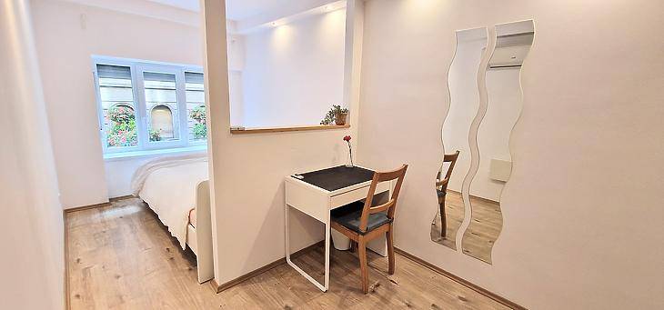 BELVÁROSI LAKÁS KIADÓ A KIRÁLY UTCÁBAN – IDEÁLIS EGYETEMISTÁKNAKBudapest belvárosában, kiváló közlekedés mellett, egy csendes, rendezett klasszikus épületben kiadó egy 115 m²-es, világos, kétszintes lakás, amely kifejezetten ideális egyetemisták vagy baráti társaságok számára.A lakás kiváló elosztásának köszönhetően 4 különnyíló hálószobával rendelkezik, mindegyik saját fürdőszobával, így minden lakó számára biztosított a teljes privát tér. Két szoba galériás fekvőrésszel kialakított, míg a másik két háló a felső szinten található.A lakásban tágas, különálló nappali és egy teljesen felszerelt, külön konyha is helyet kapott, így a közös terek kényelmesen használhatók anélkül, hogy zavarnák egymást a lakók. A háztartási helyiség további praktikusságot biztosít a mindennapokhoz.A lakás minden hálószobája klimatizált, a fűtés modern elektromos panelekkel megoldott.Bérleti díj: 1600 EUR / hóKözös költség: 30.000 Ft (7.500 Ft / fő)Rezsi: kb. 80.000 Ft (20.000 Ft / fő)Azonnal költözhető 2 havi kaució és tárgyhavi bérleti díj,valamint a közjegyzői költség fele ellenében.Kisállat tartása és a dohányzás a lakásban nem megengedett! Ideális választás, ha együtt költöznétek, de fontos számotokra a saját fürdő és a jól elkülönülő életterek. Az M1-es metró (Vörösmarty utca, Kodály körönd), a 4-6-os villamos, valamint több troli és buszmegálló néhány perc sétával elérhető, így a város bármely pontja gyorsan megközelíthető.